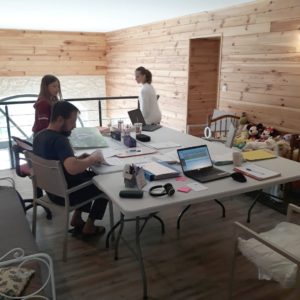 A partir de la 3ème semaine, l’organisation était en place. Nous avons installé notre espace de travail dans la mezzanine. Je commençais mon télétravail à 8h00. Les filles me rejoignaient vers 9h – 9h30 accompagnées de papa en support pour les aider si besoin. Nous faisions en sorte que les devoirs soient faits sur la matinée.Bien sûr il y a eu des jours plus durs que d’autres, des tensions, des tons qui montent car la pédagogie n’est pas évidente pour tout le monde, notre patience atteint vite ses limites surtout envers ses propres enfants. Et nos enfants n’ont pas le même comportement avec nous qu’à l’école. Malgré tout, je suis assez fière de nous. Avec du recul, on s’en est bien sorti !