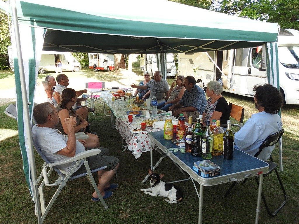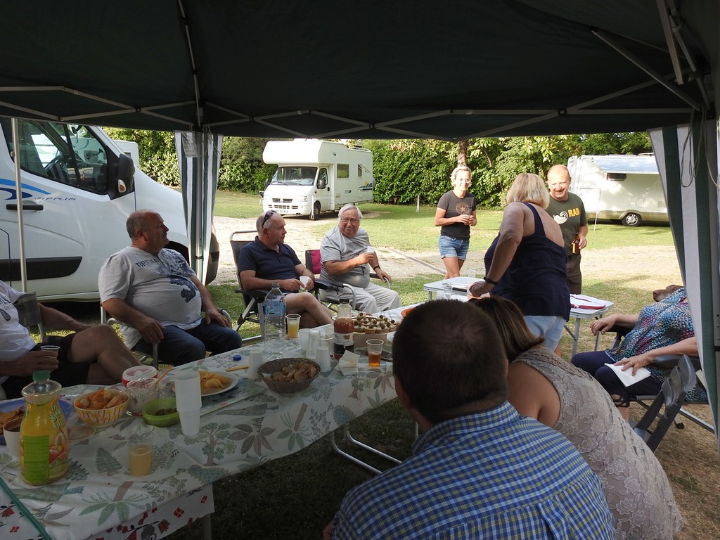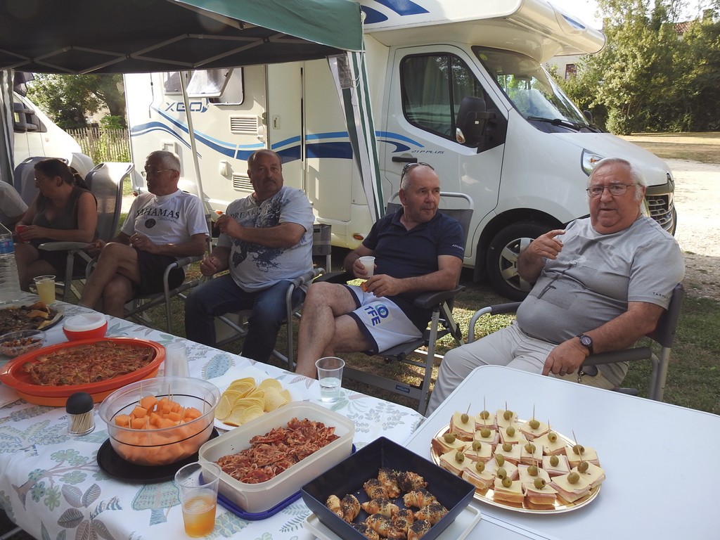 Pour remercier Monsieur le Maire de son chaleureux accueil, Alain Maury connu sous le surnom de Allan Dartagnan, l’invitait samedi soir à rejoindre les six couples présents pour un apéritif. La joyeuse assemblée se composait de Lot-et-Garonnais, Gersois et Girondins dont le maire du petit village de Sendets. Après les présentations, c’est en trinquant et en dégustant les nombreux amuse-gueules qu’Allan expliquait les sorties fréquentes du groupe et son fonctionnement. Une soirée paisible en perspective, face au Dropt et au Pont Roman.