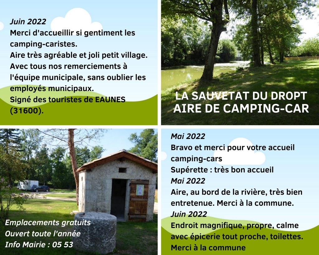 Contacté en début de semaine dernière, Jean-Luc Gardeau, Maire de La Sauvetat du Dropt, savait de la bouche même de son président Alain Maury que l’aire de camping-car serait investie par des membres du groupe des Amis Camping-Caristes Amoureux de la France. Du jeudi au mardi, l’aire aura accueilli entre 6 et 8 camping-cars chaque jour, installés au bord du Dropt, laissant encore de la place pour d’autres camping-caristes de passage.