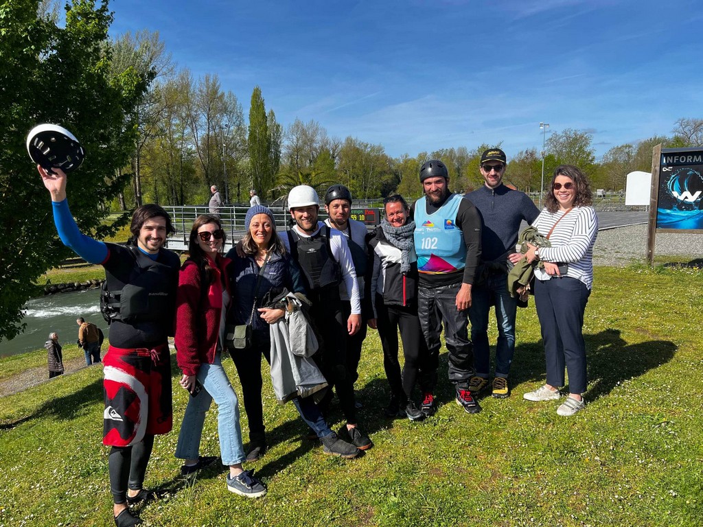 Avant de poursuivre, il faut savoir que 2 équipes de France participent. La nôtre, issue du Canoë Kayak Club Vallée du Dropt et une équipe de Pau dont les membres ont la chance de pouvoir s’entraîner sur le stade d’Eaux Vives à Pau-Béarn.