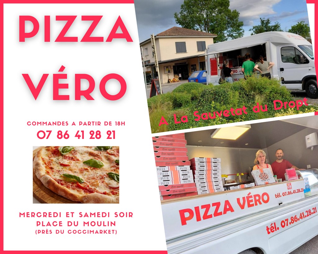Un rappel et une bonne nouvelle pour les amateurs de galettes italiennes ! Depuis la première semaine de mai, Pizza Véro, secondée maintenant par Jérôme, son mari, vous servira deux jours par semaine sur la Place du Moulin de La Sauvetat du Dropt. Le mercredi, mais aussi le samedi.