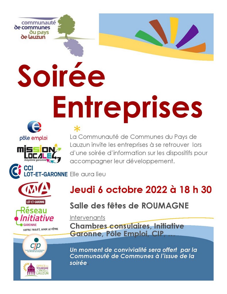 Un moment de convivialité sera offert par la Communauté de communes à l’issue de la soirée. Un moment parfait pour discuter entre acteurs et professionnels de la région et créer de nouvelles opportunités.