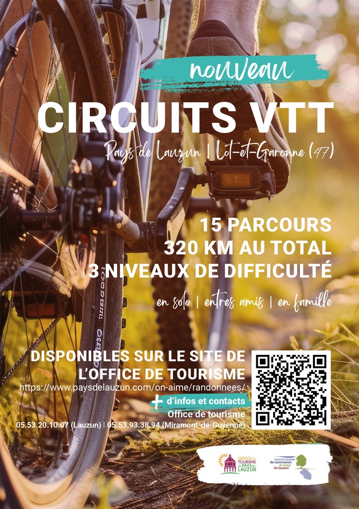 C’est nouveau et cela plaira aux adeptes du vélo tout terrain, des circuits VTT sont maintenant disponibles et répertoriés sur le site de l’Office de Tourisme du Pays de Lauzun.