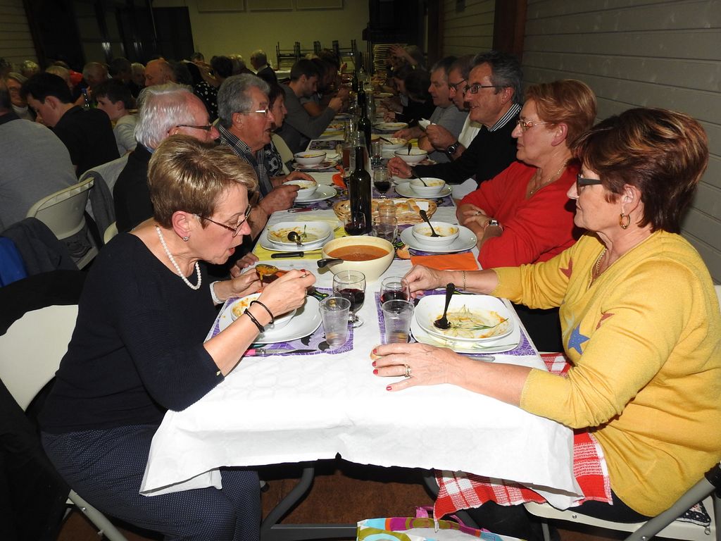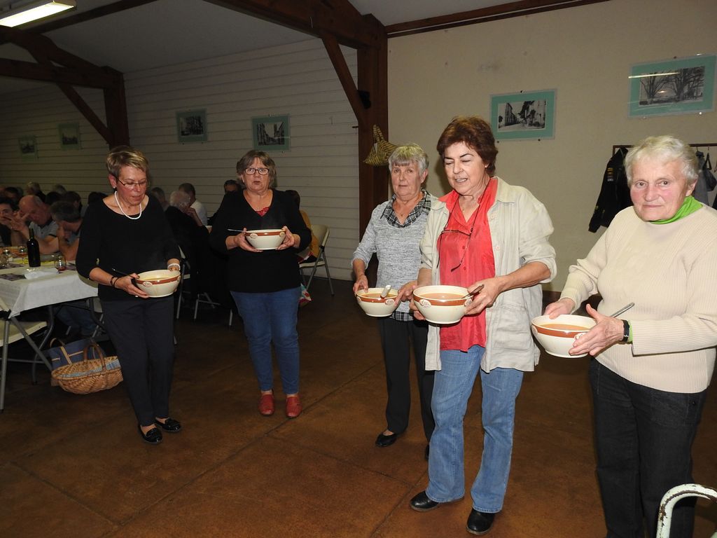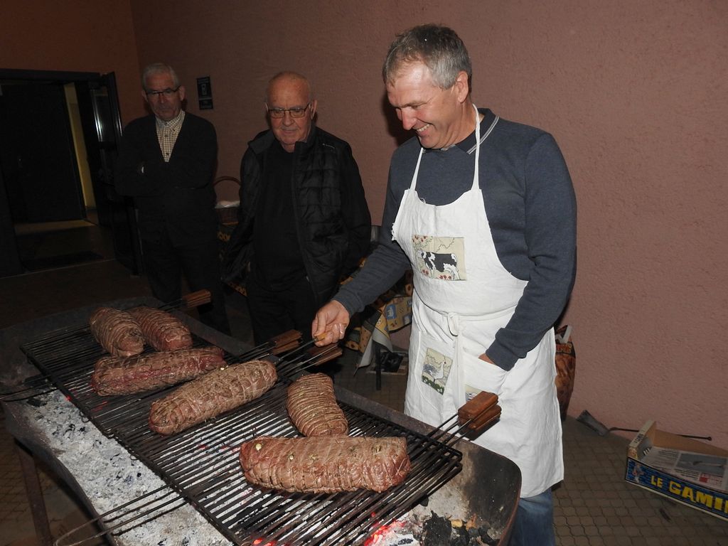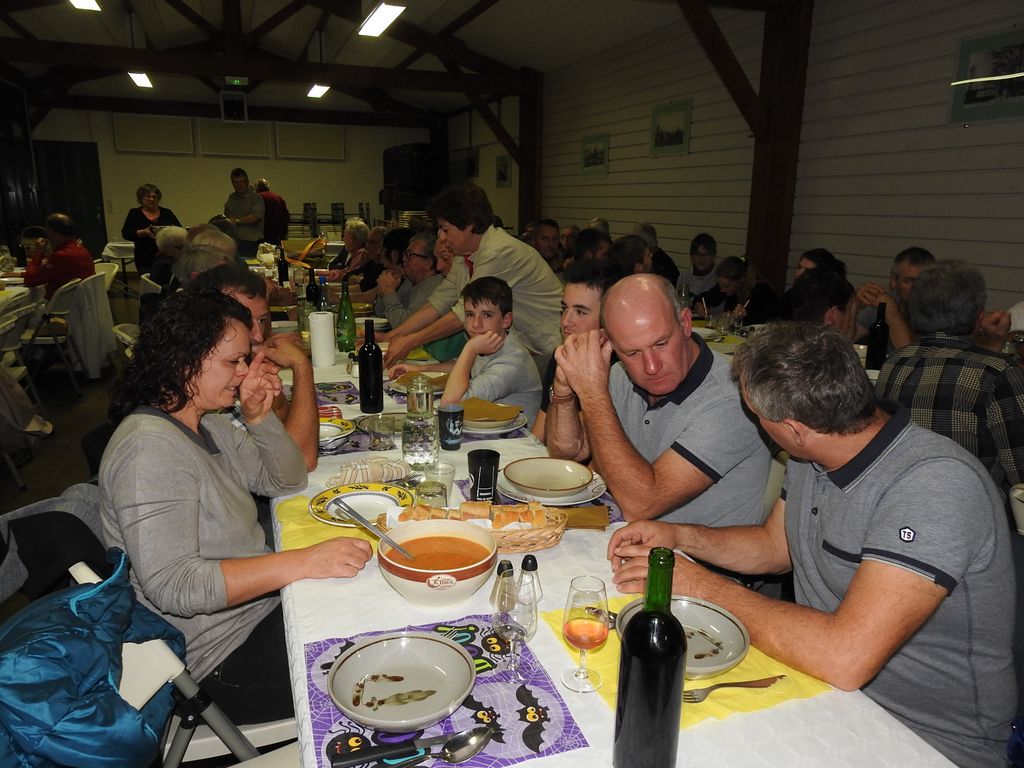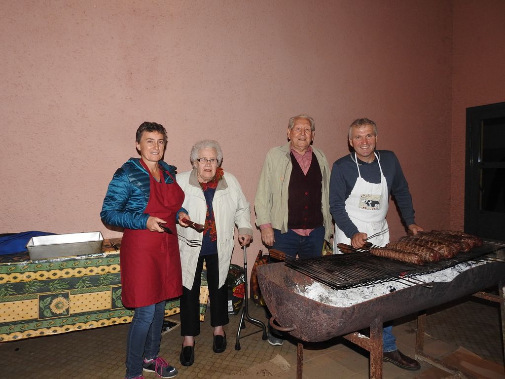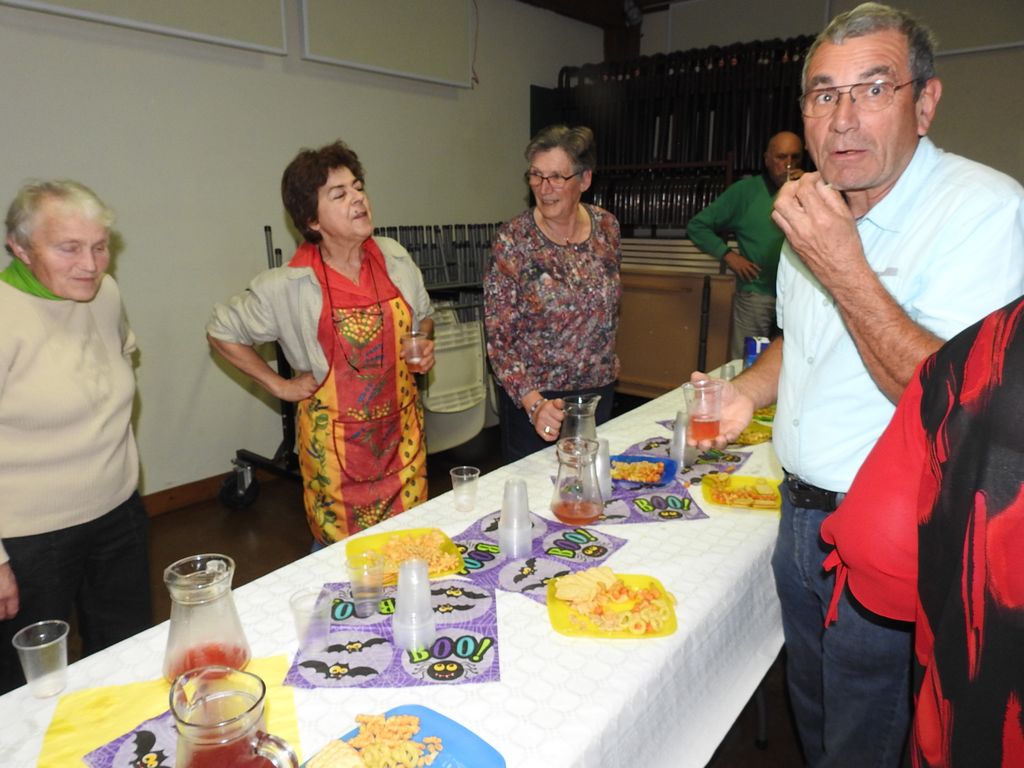 Les potirons et autres potimarrons étaient préparés en potage puis en divers savoureux desserts. Menu mitonné par nos mamies gastronomes qui tiennent à conserver précieusement les recettes du patrimoine culinaire local et la chaleureuse convivialité des repas de campagne d’antan. Pour le plat principal, des rôtis de bœuf cuits à la braise, ces dames ont fait appel à Thierry Janssen et Stéphane Bottin, éminents spécialistes es barbecue du Comité des Fêtes.