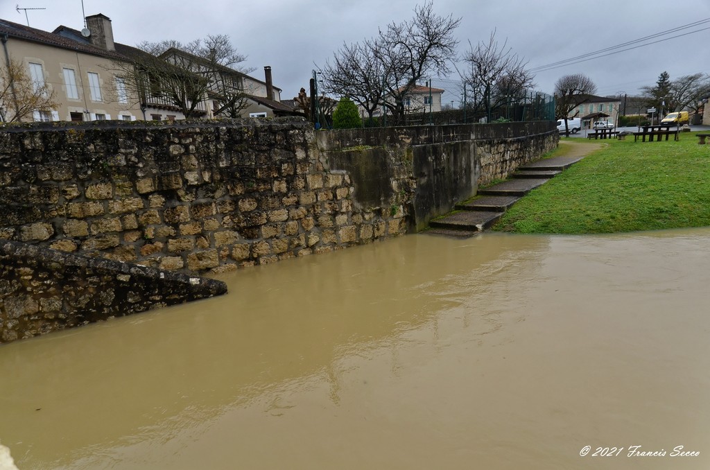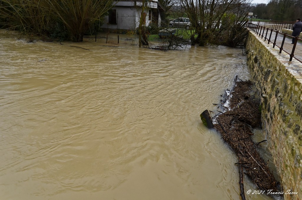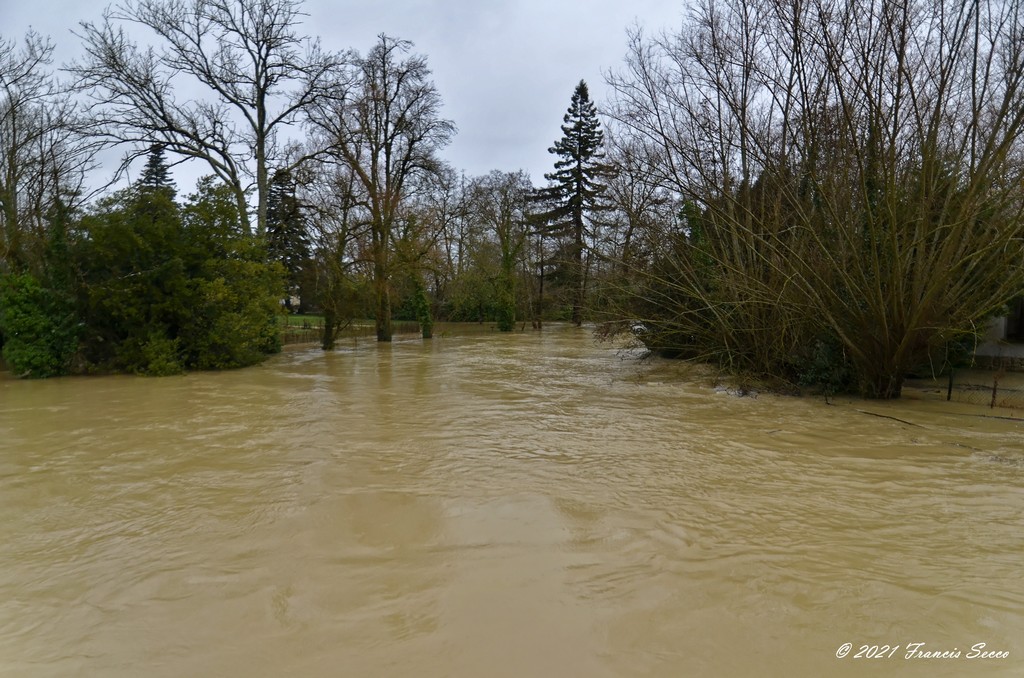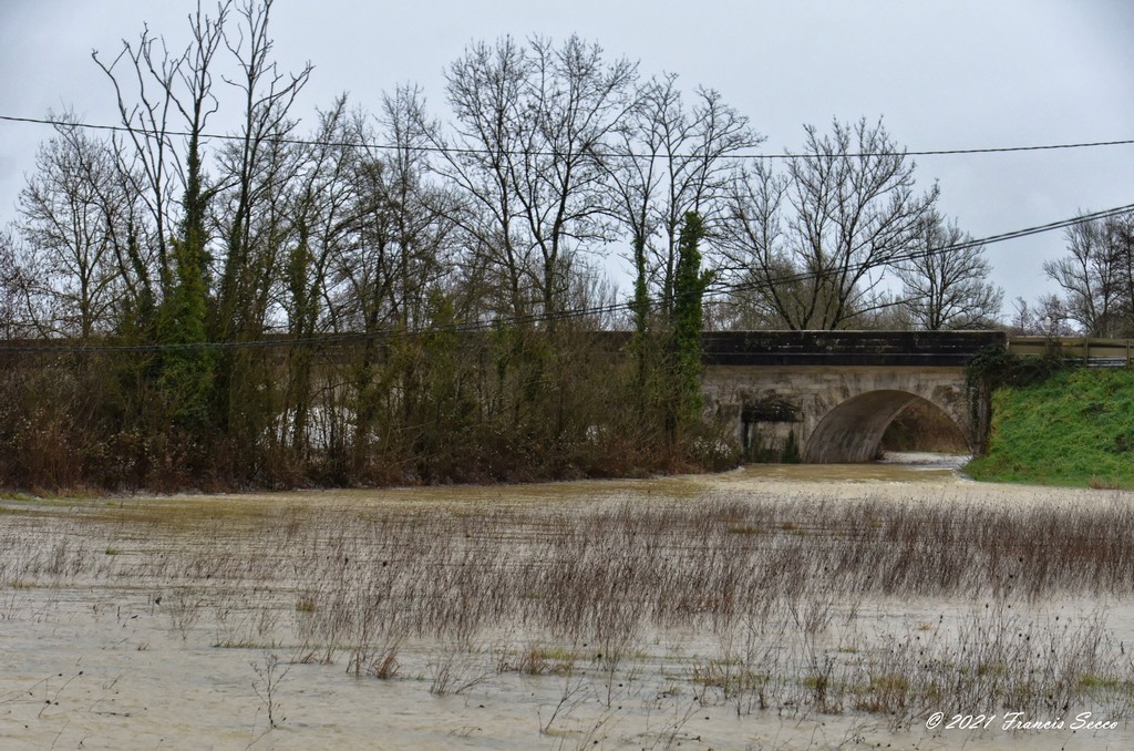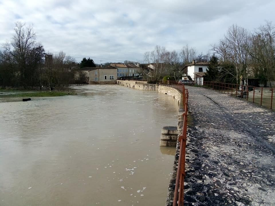 Loin d’avoir atteint la crue de 1856 comme l’atteste la photo de Francis Secco, il n’en reste pas moins qu’un gros travail de nettoyage sera nécessaire pour dégager les branches accumulées au niveau des arches maintenant presque invisibles du Pont Roman ! Il va s’en dire que les camping-cars ne s’aventureront pas de sitôt sur l’aire qui leur est réservée et que les travaux de plantation des usagers des jardins familiaux devront attendre une période plus sèche !