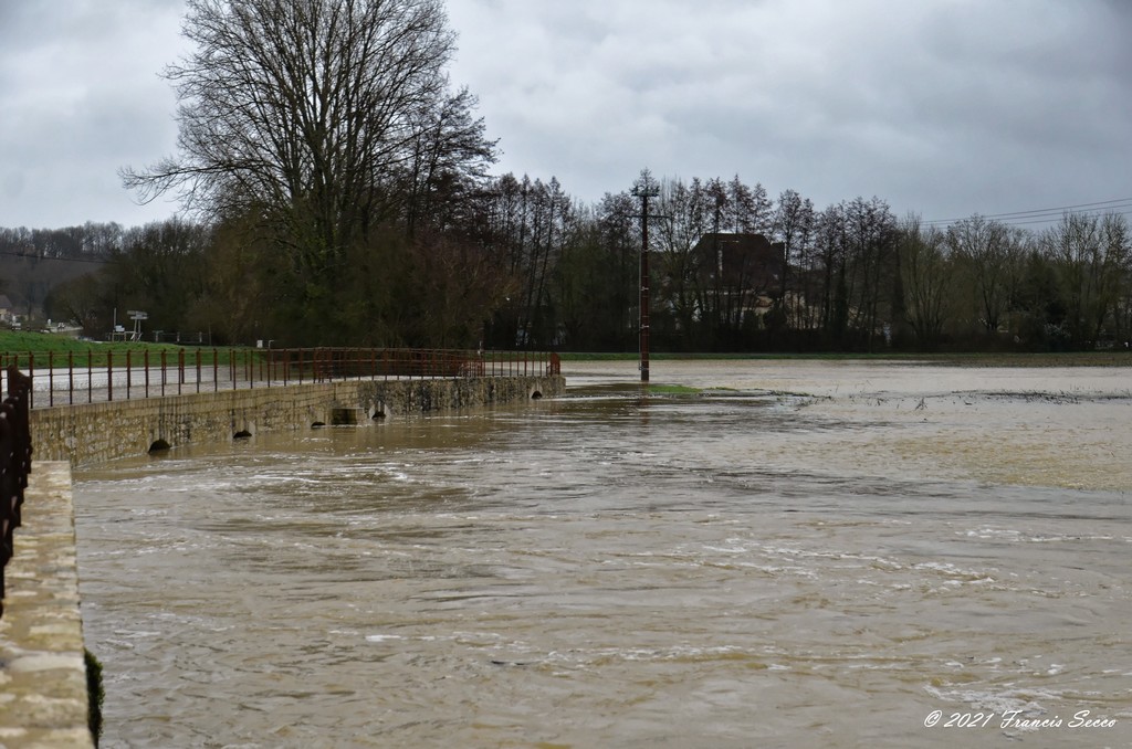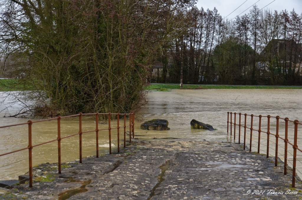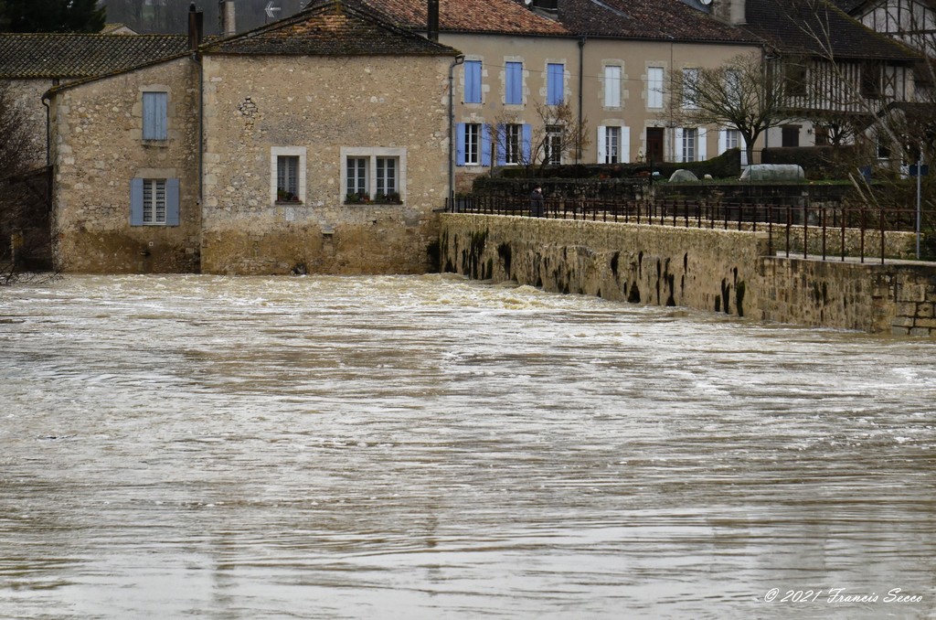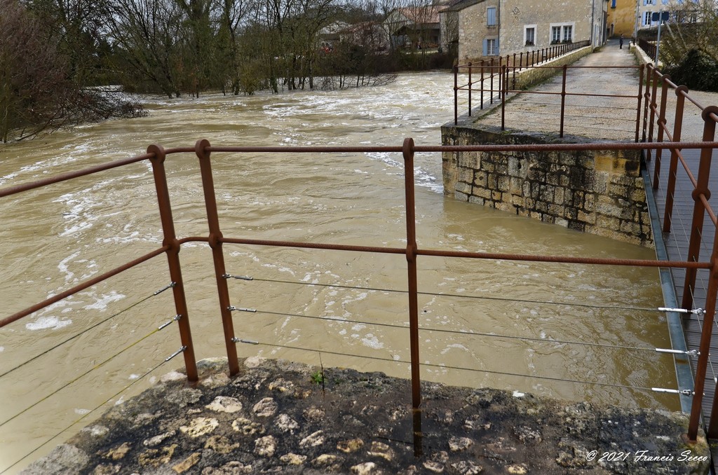 Loin d’avoir atteint la crue de 1856 comme l’atteste la photo de Francis Secco, il n’en reste pas moins qu’un gros travail de nettoyage sera nécessaire pour dégager les branches accumulées au niveau des arches maintenant presque invisibles du Pont Roman ! Il va s’en dire que les camping-cars ne s’aventureront pas de sitôt sur l’aire qui leur est réservée et que les travaux de plantation des usagers des jardins familiaux devront attendre une période plus sèche !