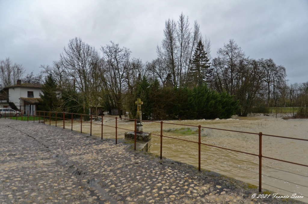 A La Sauvetat du Dropt, vous êtes nombreux à avoir observé la montée des eaux du Dropt. Suite aux pluies abondantes et parce que le Lac de l’Escourou est plein depuis plusieurs semaines, il n’aura pas fallu beaucoup de temps pour que le lit de la rivière s’étale dans les champs alentours et même sur la chaussée à certains endroits.