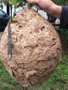 Juste un petit détail, c’est l’automne et la perte des feuilles qui a permis la découverte du nid mais il y avait bien longtemps qu’il était là. Plusieurs autres nids ont été détruit dans le village et aux alentours depuis quelques semaines.
