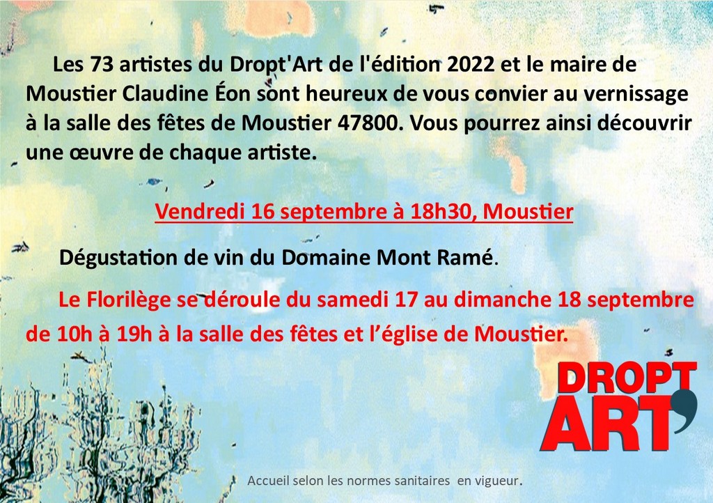 Vernissage du florilège – Vendredi 16 septembre 2022 à 18h30 – Salle des fêtes et église – Bourg – 47120 Moustier