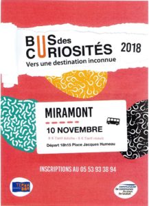 Le Bus des Curiosités transporte les curieux vers une destination culturelle inconnue. Théâtre, danse, cirque, concert, opéra, festival, tout peut arriver ! Seuls la date, l’heure de rendez vous et le lieu de départ sont dévoilés. Son carburant : suggérer, surprendre, susciter l’inattendu !