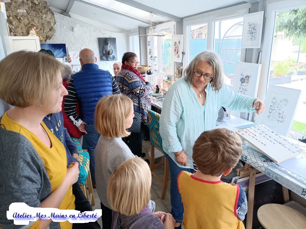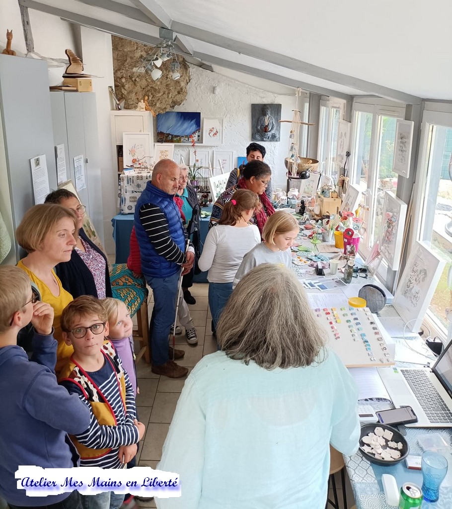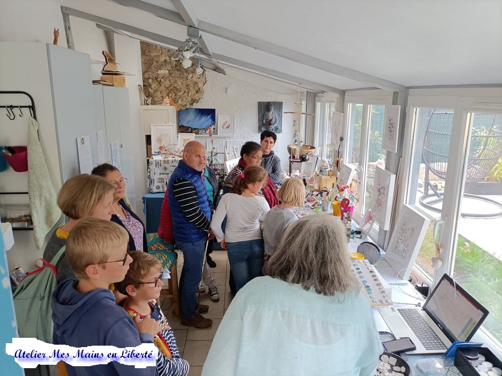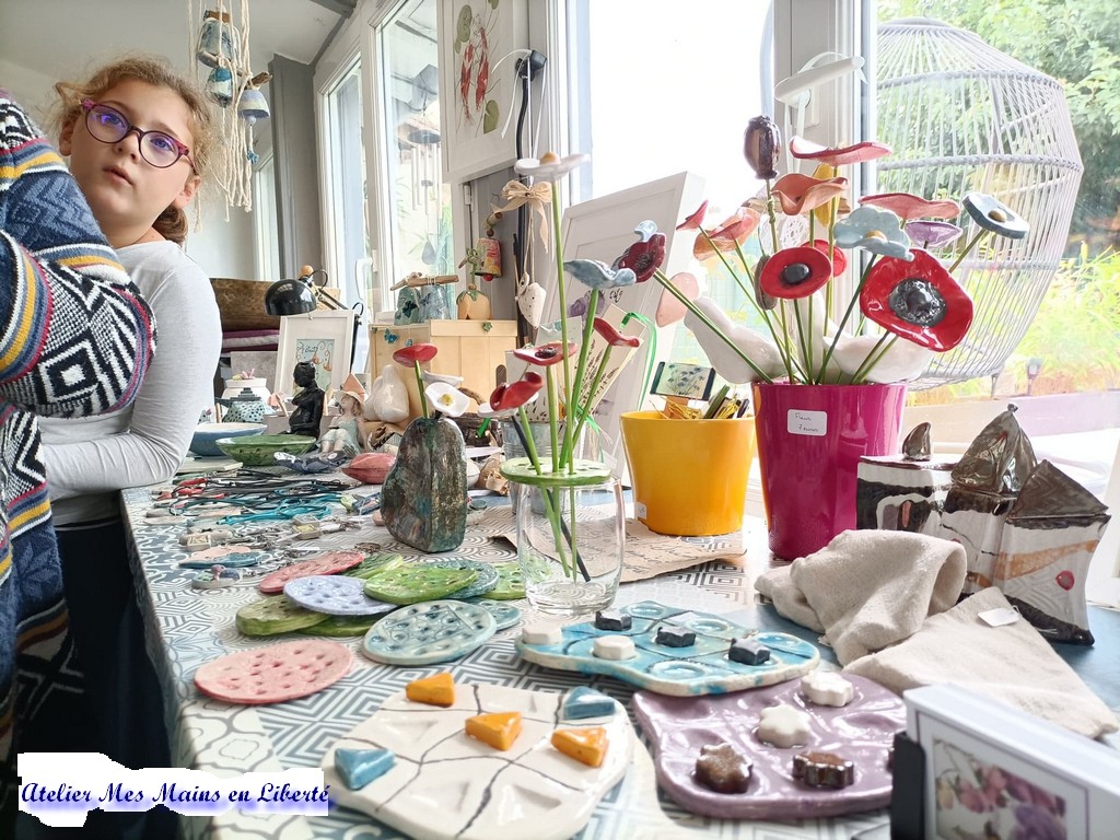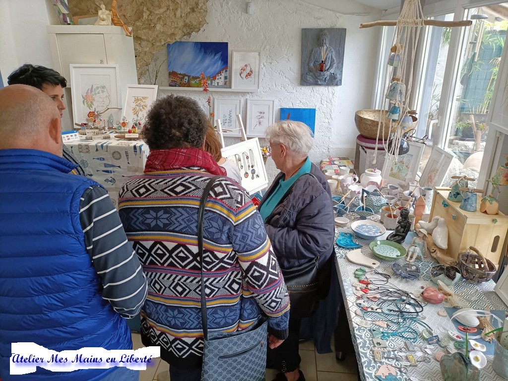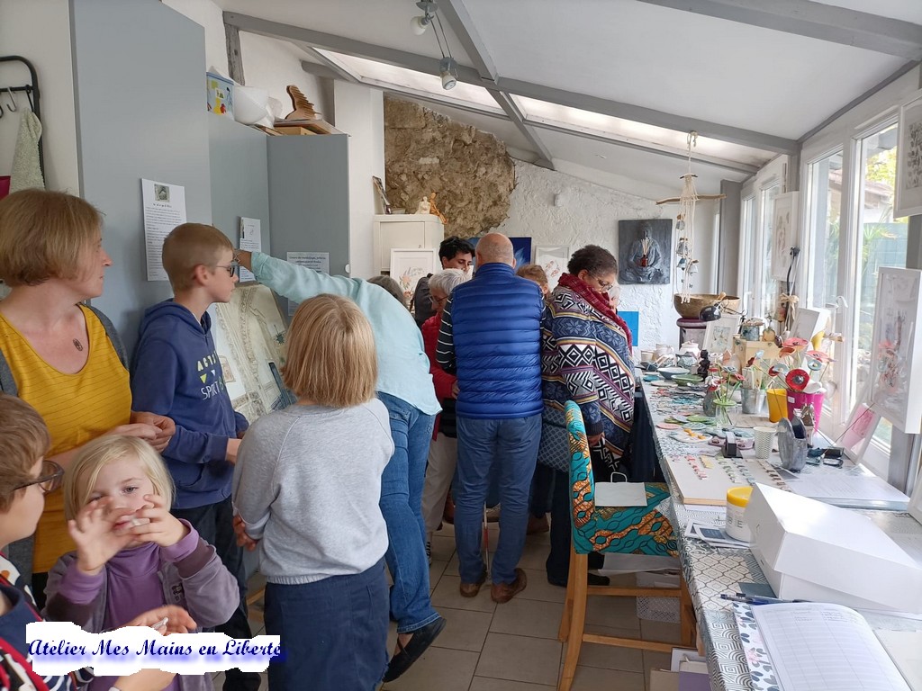 Dimanche 2 octobre, Houria Besse ouvrait grande la porte de son atelier baptisé Mes mains en liberté situé au 62 Avenue de Grammont à La Sauvetat du Dropt. Un atelier étroit baigné de lumière où étaient exposées des créations colorées et variées.