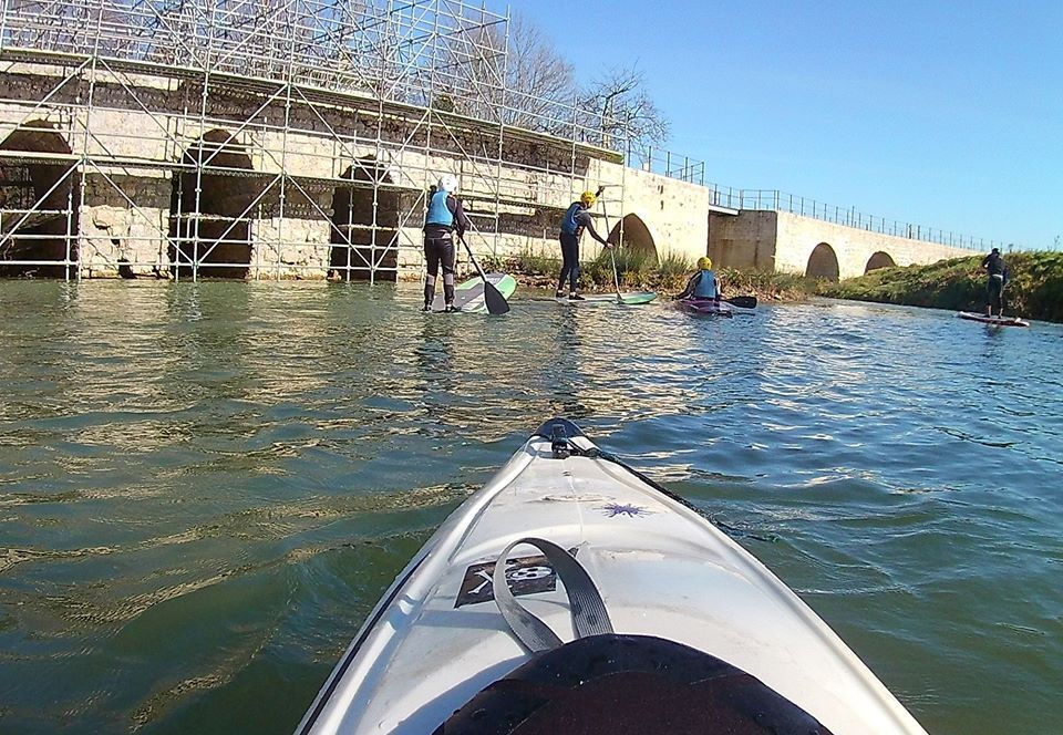 Quel plaisir pour les élèves du Canoë Kayak Vallée du Dropt de s’entraîner sous ces étranges températures élevées de ce mois de février ! Cela nous vaut de belles photos prises entre l’embarcadère et le pont roman baigné de lumière et hérissé d’échafaudages créant presque une œuvre d’art.