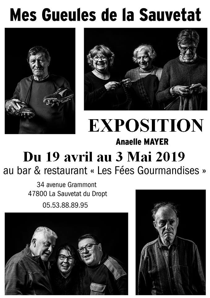 Le vernissage de l’exposition « Mes Gueules de La Sauvetat » d’Anaelle Mayer qui avait lieu dans la salle du restaurant familial Les Fées Gourmandises samedi 19 avril a attiré du monde et pas seulement de son village de La Sauvetat du Dropt. Tous ont pu admirer ces photos en noir et blanc de sauvetatois qu’elle connaît pour les avoir côtoyés souvent dans le bar maternel.