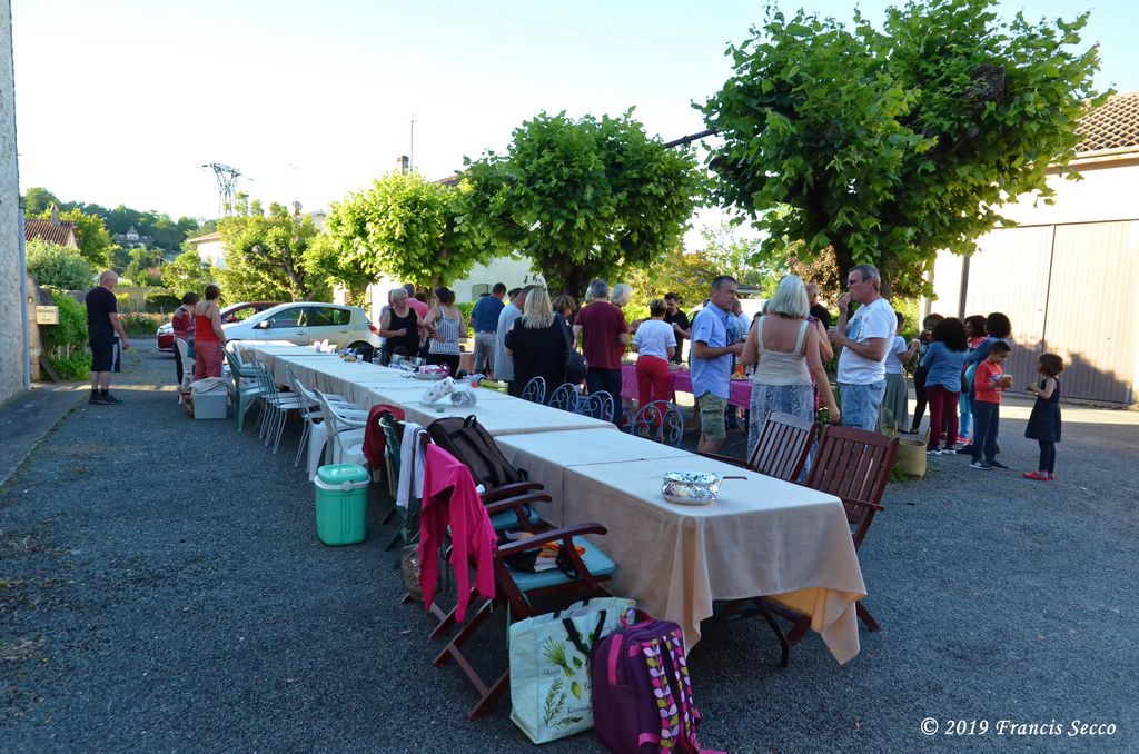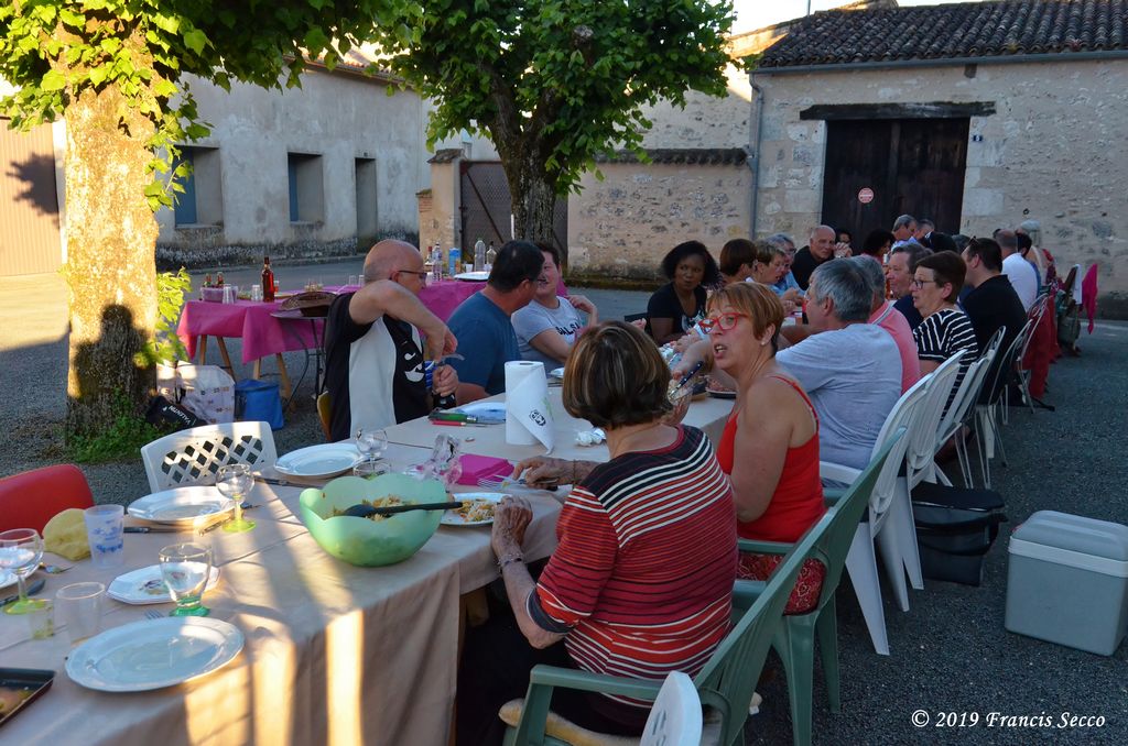 C’est devenue une tradition nationale des plus conviviales qui permet aux nouveaux arrivants comme aux résidents de longue date de rencontrer ceux que l’on croise régulièrement sans vraiment les connaître. C’est ainsi que la Place du Temple était investie ce samedi 1er juin en soirée par les habitants du quartier et un peu plus puisque chaque résident peut inviter un couple ami. D’où la présence de Monsieur le Maire Jean-Luc Gardeau et de son épouse Patricia ou encore de Bérénice et Mark Swann venus de Guillegorce invités par le couple anglophone de la Maison de la Tour.