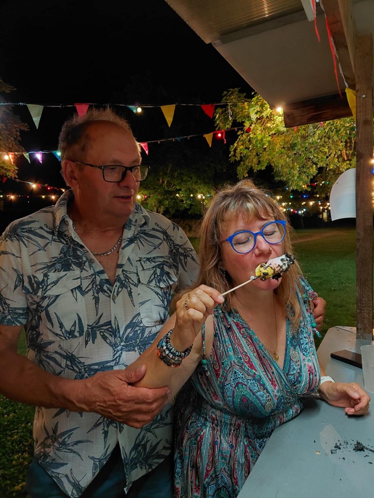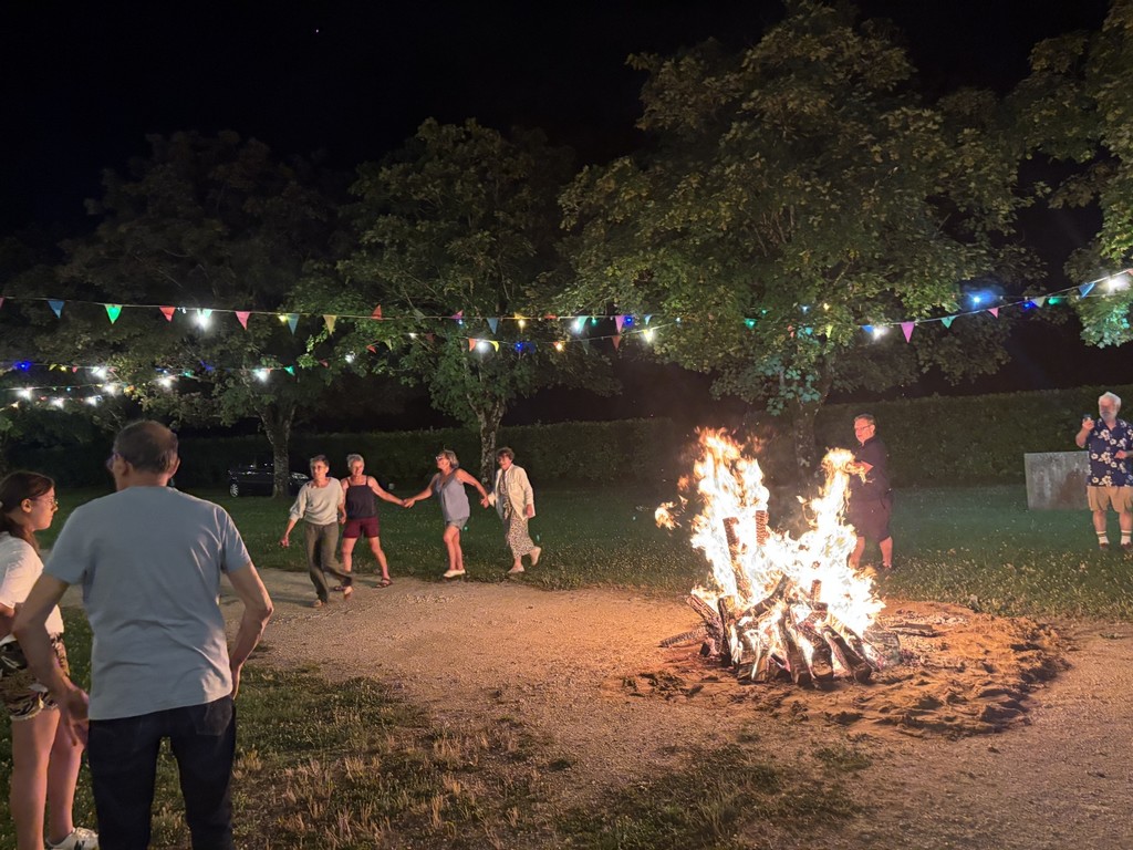 A la nuit tombée, André Dubernard, le président de l’association himself, alias DJ Dédé pour l’occasion, déroulait sa play-list pour célébrer ce 21 juin où la musique se fête partout dans le pays. Au même moment, Stéphane allumait le feu dit de St Jean. Une tradition païenne multi-millénaire dont la date exacte est le 24 juin pour marquer les jours les plus longs de l’année. S’en suivi une ronde, timide au début, puis rejointe par les joyeux drilles de la soirée. Et tandis que le feu touchait à sa fin, Marie, Annick et Maureen retrouvaient leur âme d’enfants en faisant caraméliser des chamallow.