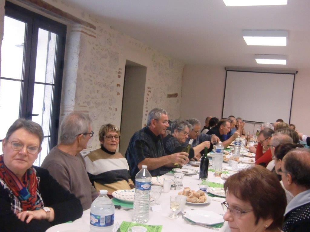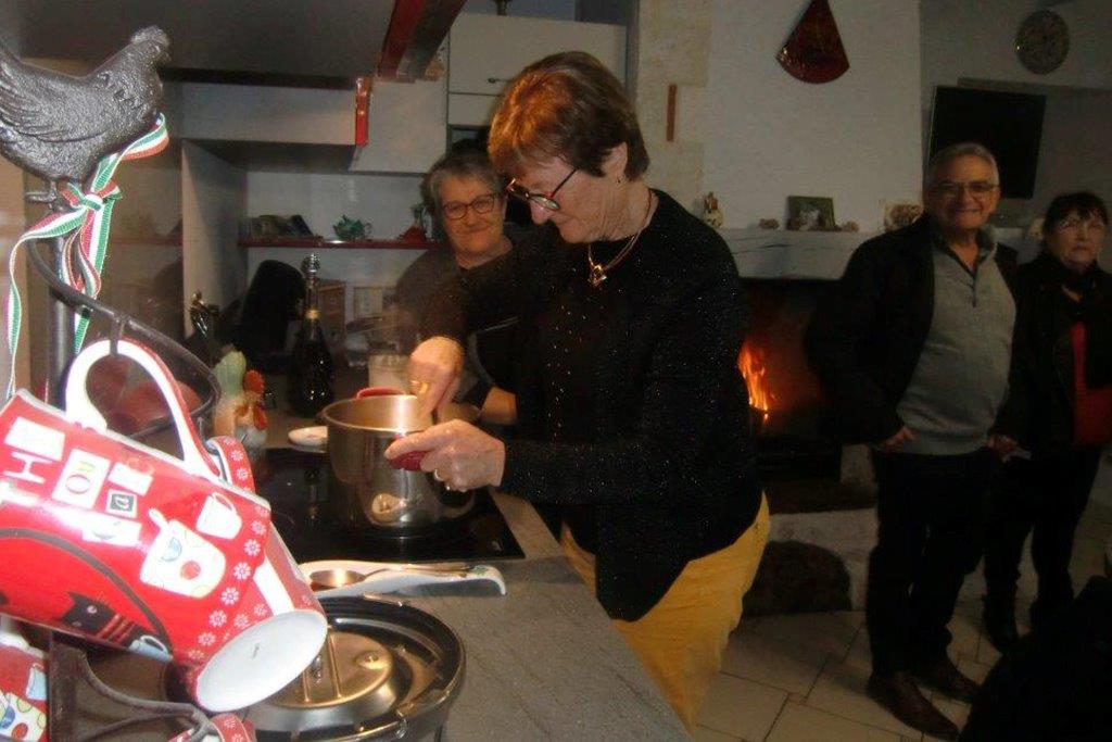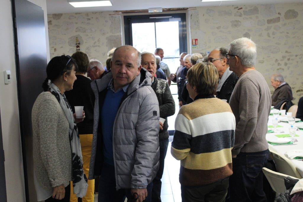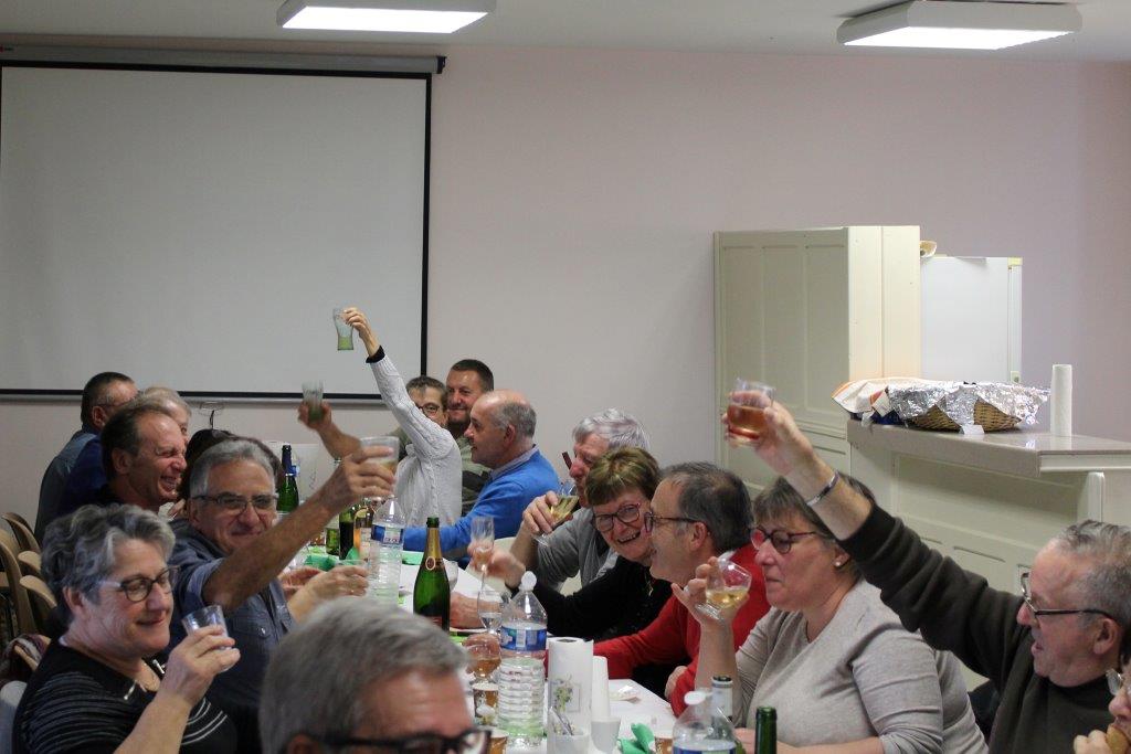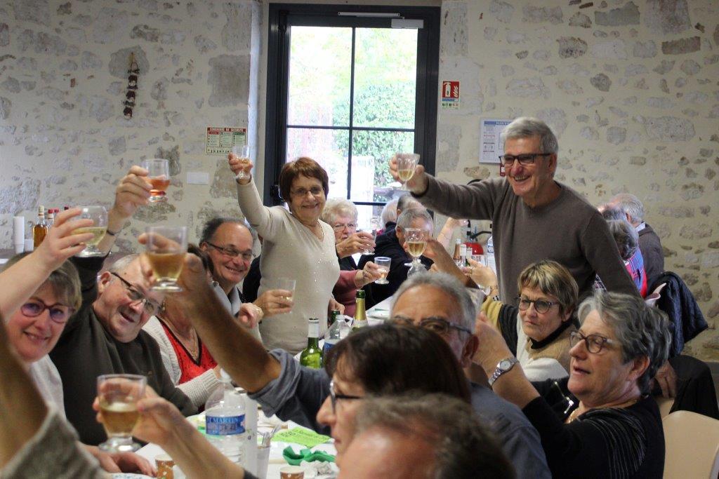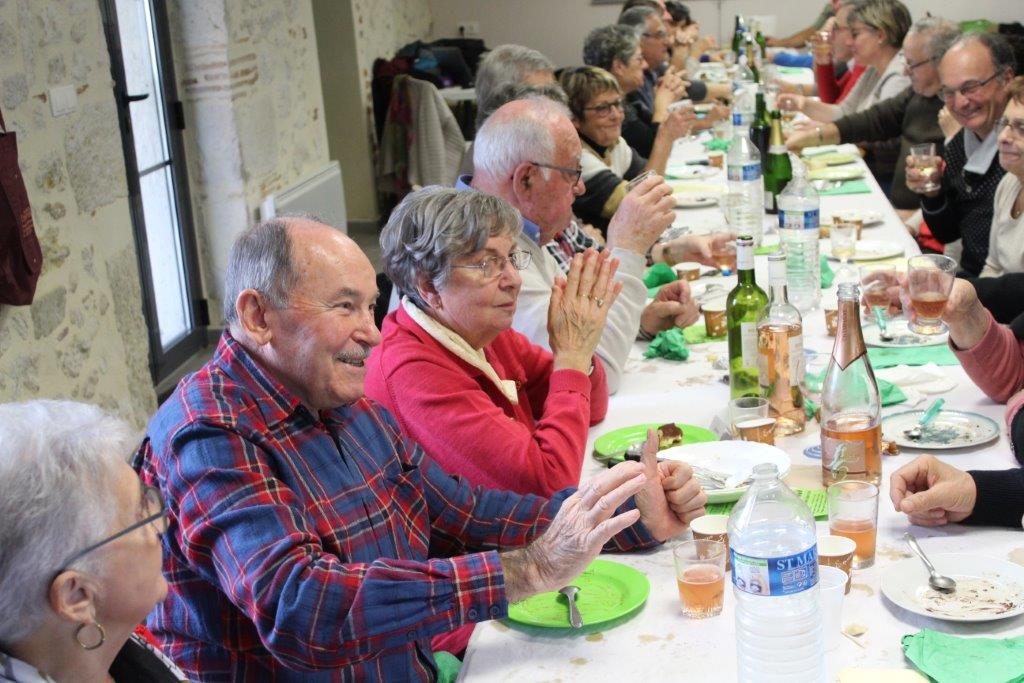 Fin d’année gastronomique pour clôturer l’année 2019, la majorité des membres avait décidé de revenir à la formule repas à domicile dans la salle de la maison des loisirs, prêtée généreusement par le conseil municipal de La Sauvetat, que nous remercions chaleureusement. Salle comble avec les trente six participants autour de la table.