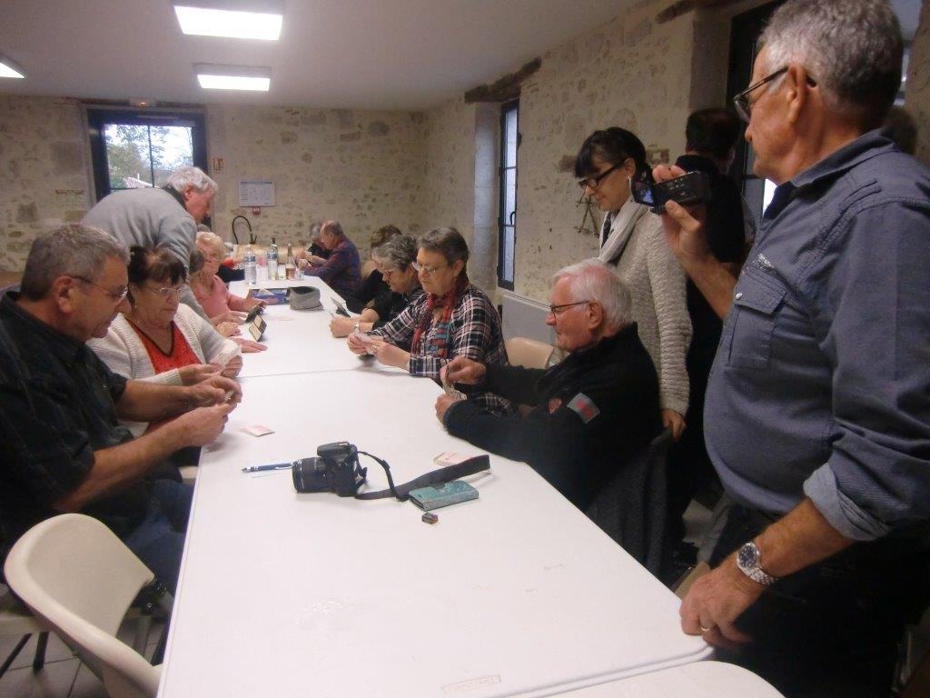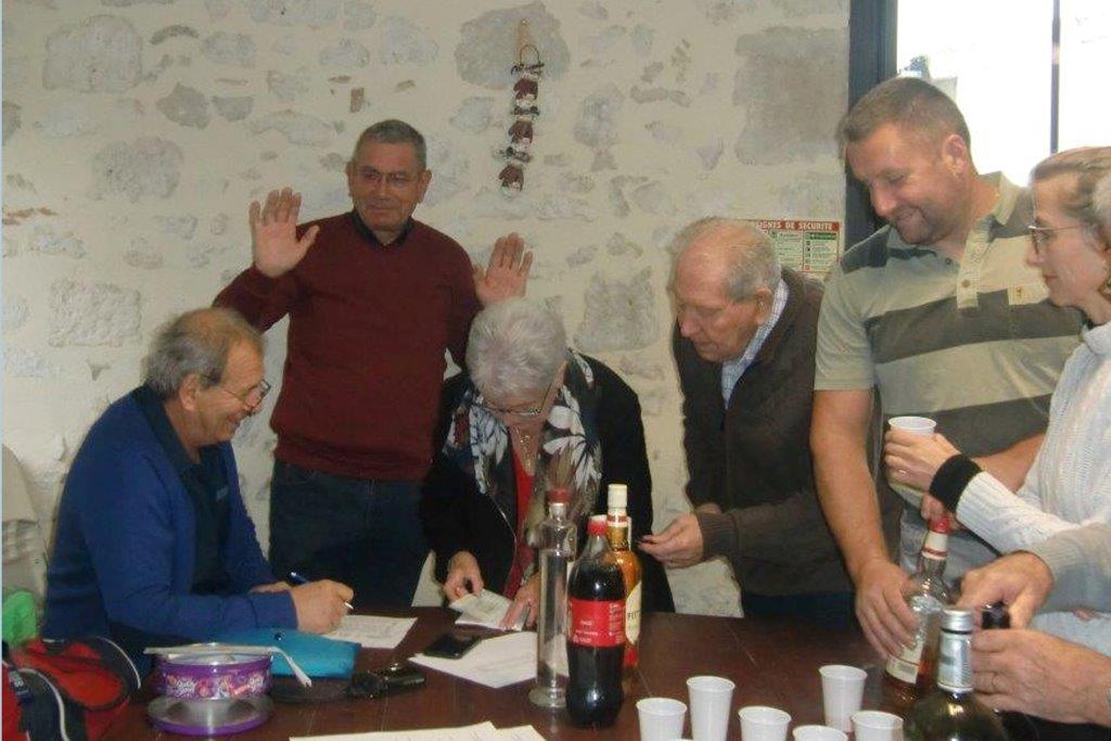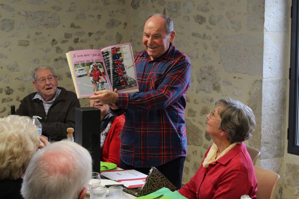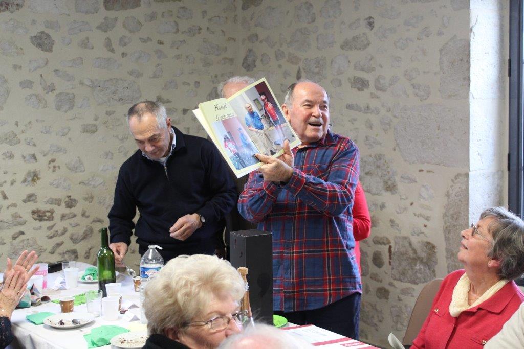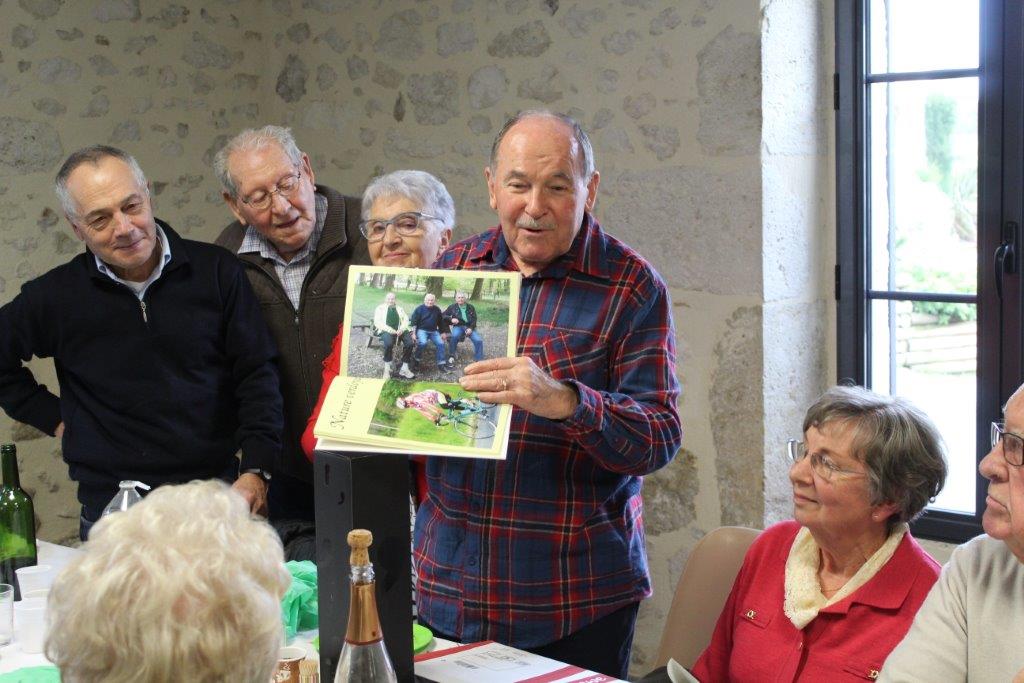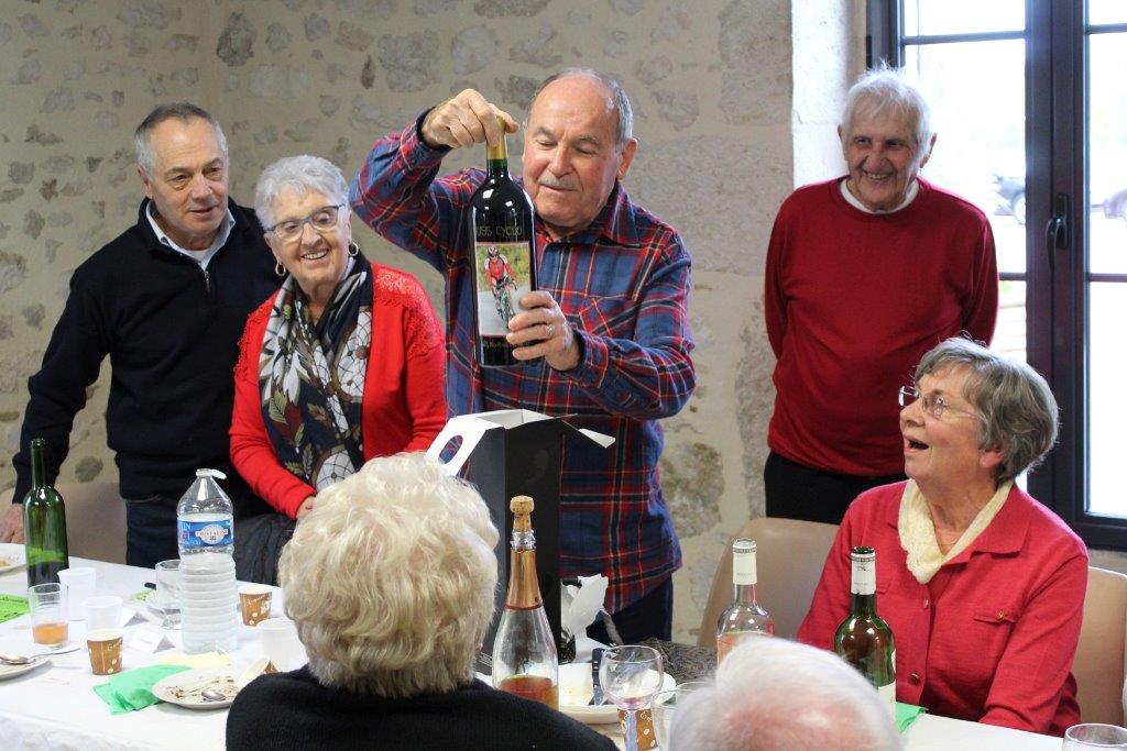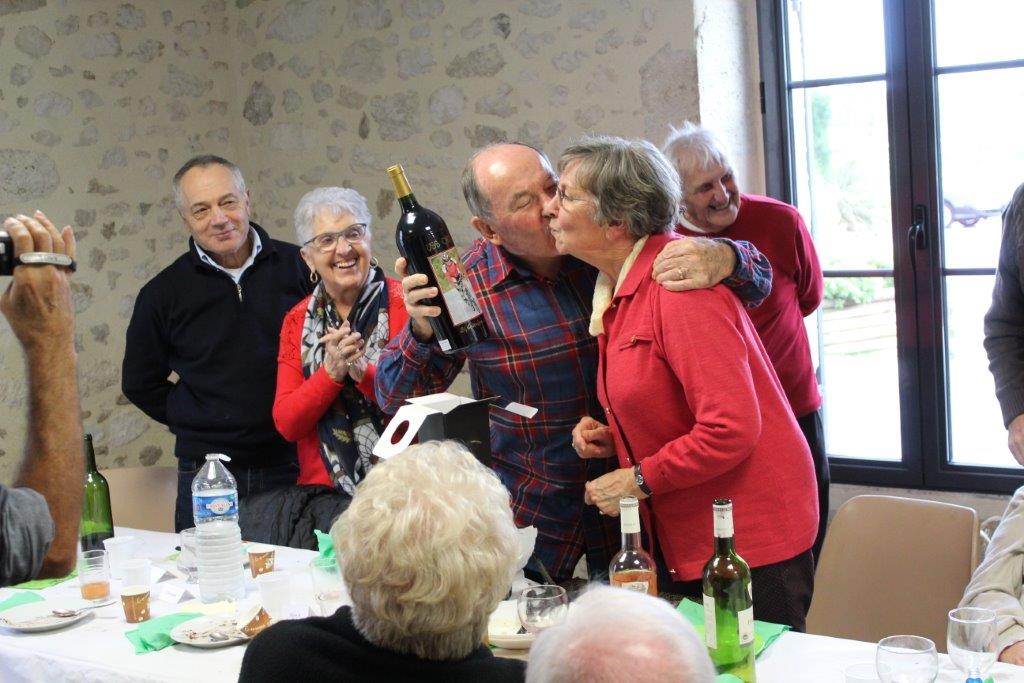 Jacqueline et Alain lui ont remis en récompense, une bonne bouteille à son effigie ainsi qu’un abécédaire retraçant les différents caractères de sa personnalité. Moment émouvant, suivi d’une après midi récréative. Les plus courageux ont fait une marche sur le magnifique pont romain réhabilité depuis peu, les plus frileux se sont contentés avec une partie de belote et de dominos.