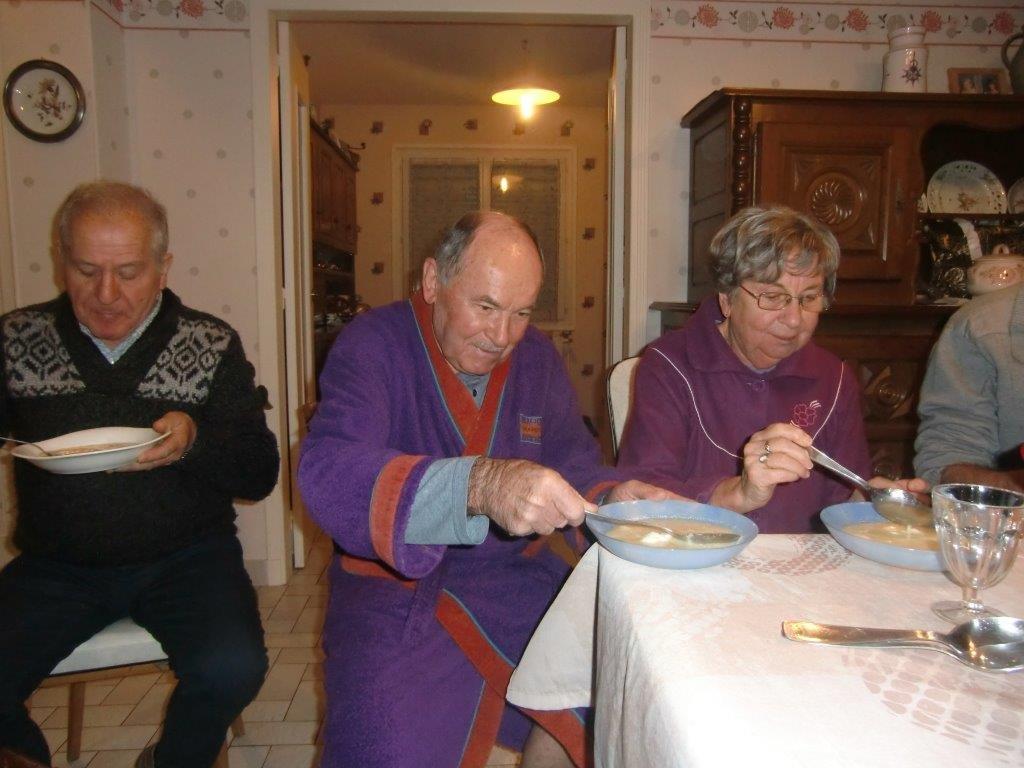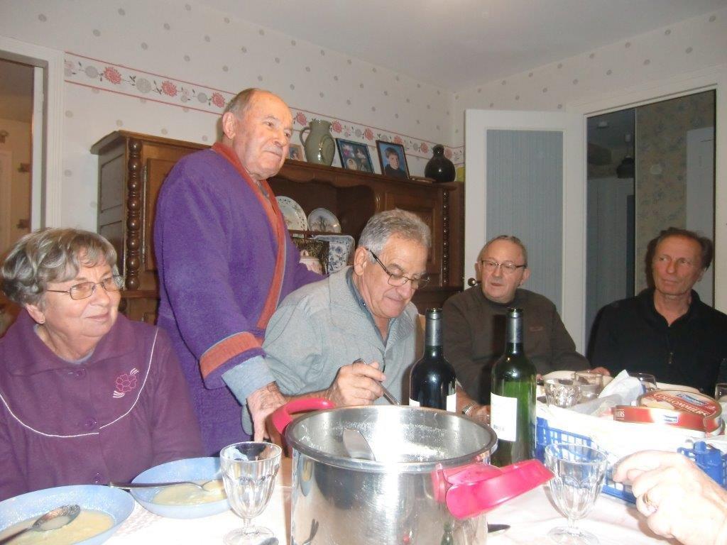 Après souper, chacun y allant de son enthousiasme, en moins d’une demi heure, la salle fut débarrassée et nettoyée. Mais où sont passés Annette et Yves ? Il reste encore quelques merveilles ! La tentation est trop forte, nous voici réunis chez Régine et Hervé pour préparer un tourin. La soirée ne pouvait mieux se terminer, Annette levée la première nous ouvre prudemment sa