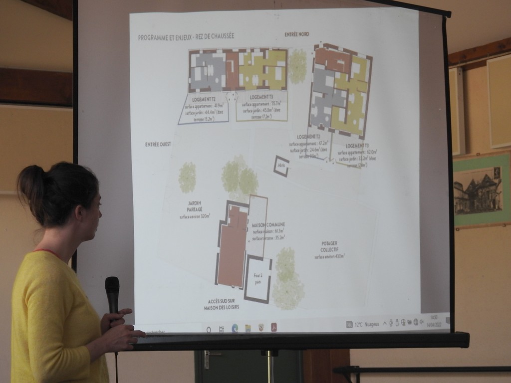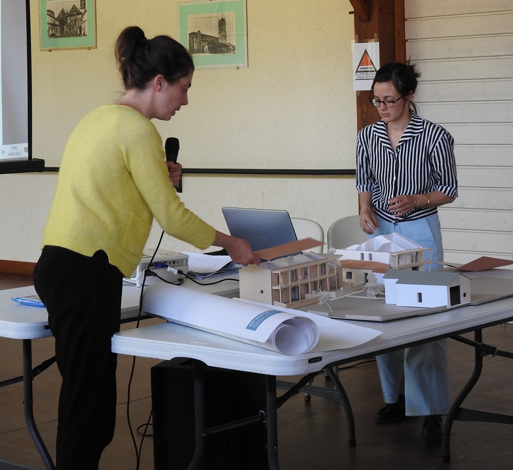 Clémence Besson et Léa Bolze dont le cabinet d’architecture est situé à Bordeaux présentaient alors la maquette du projet en expliquant que rien n’était définitif mais qu’au contraire la discussion était ouverte pour modifier les plans en fonction des désirs ou des besoins des personnes susceptibles de vivre un jour dans cet habitat partagé.