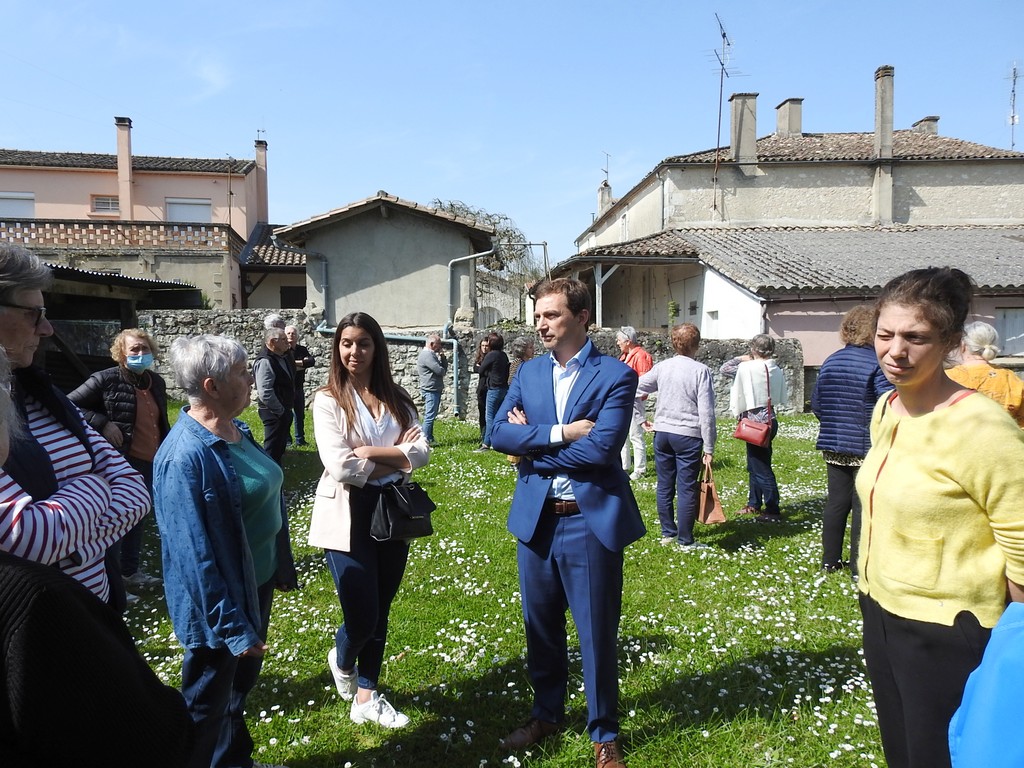 L’après-midi se terminait par une visite très appréciée de l’espace extérieur des maisons Brugère. La découverte du grand jardin vert moucheté de pâquerettes sous un beau soleil de printemps clôturait ces premiers échanges sur une note très optimiste. Là encore, Clémence Besson et Léa Bolze pouvaient expliquer l’ensemble du projet au groupe de seniors sauvetatois très attentifs. De son côté, Monsieur le Maire faisait de même avec Monsieur le Député.