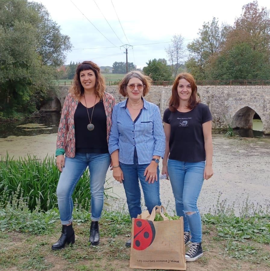 Photos de Yves Pénicaud : près du Pont Roman, Hedwige, Christine et Lydie. Au P’tit Panier du Dropt, Christine et Hedwige.