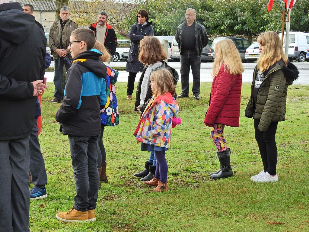 Par la municipalité et la population de La Sauvetat du Dropt dont Jean-Pierre Meyrat, ancien combattant, les enfants de l’école accompagnés de leurs parents et de leur professeur des écoles Stéphanie Ledoux ainsi que des Britanniques venus en souvenir du sacrifice de leurs compatriotes au même titre que les Canadiens, les Italiens ou plus tard les Américains.