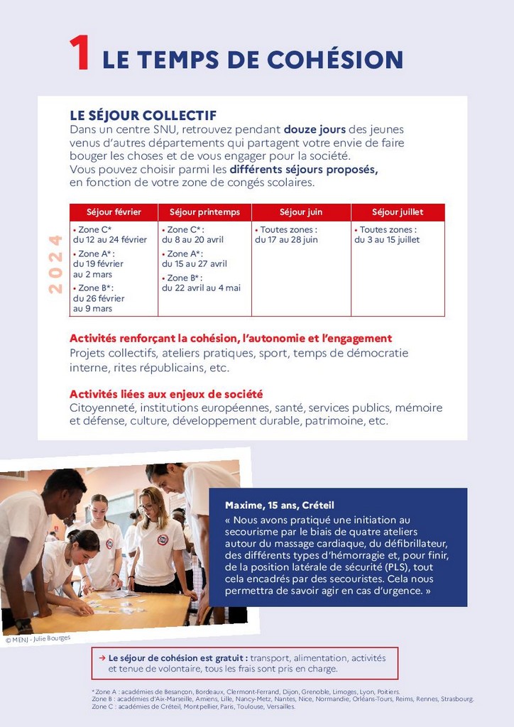Les dates des séjours de cohésion du premier semestre 2024 sont désormais connues et les jeunes peuvent s’inscrire sur le portail internet prévu à cet effet : SNU.gouv.fr
