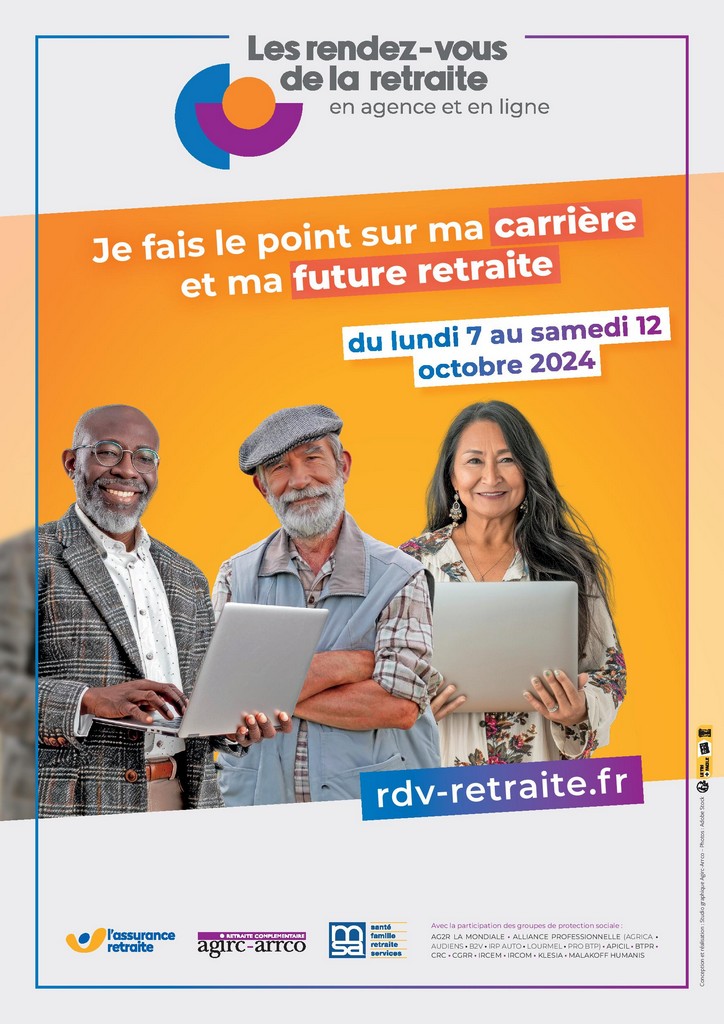 L’Assurance retraite, l’Agirc-Arrco et la MSA organisent du 7 au 12 octobre les Rendez-vous de la retraite. 50 000 rendez-vous individuels seront proposés dans toute la France métropolitaine et dans les DROM (Guadeloupe, Guyane, Martinique et La Réunion).