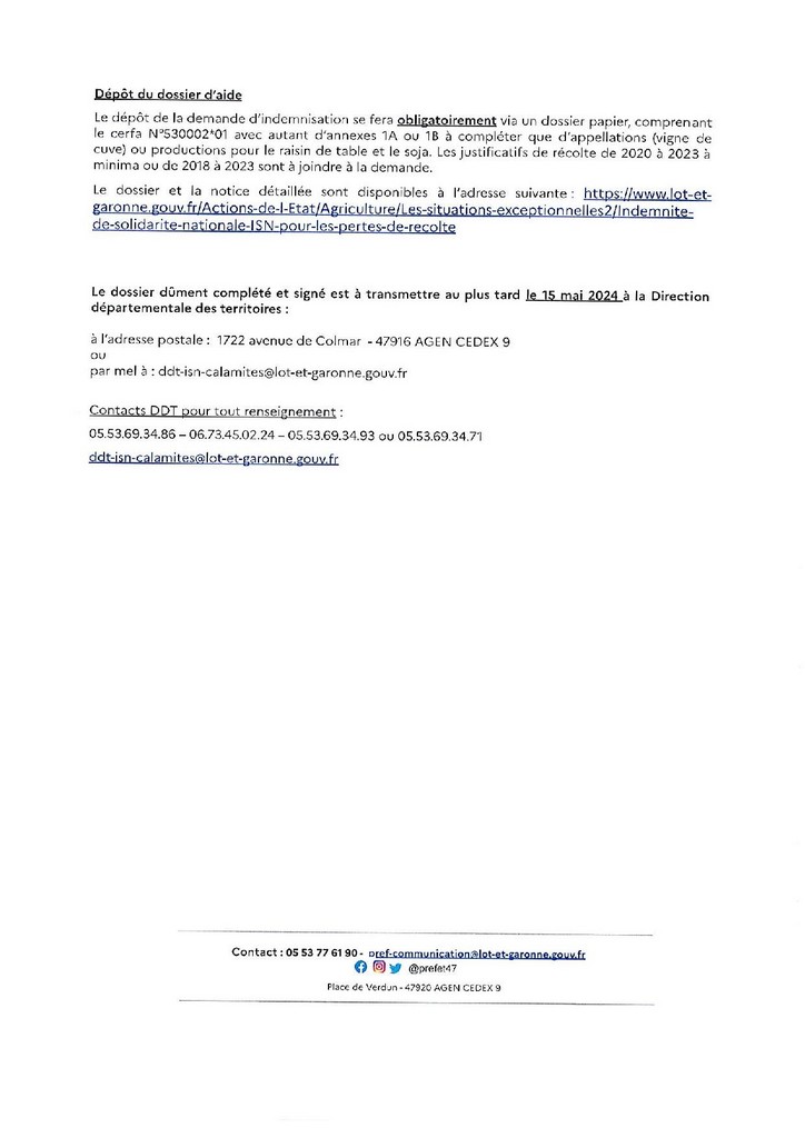 Veuillez lire ci-dessous les conditions d’éligibilité et d’indemnisation ainsi que l’Arrêté pris par la Préfecture 47.