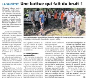 « La chasse est un service rendue à la population. Les battues sont organisées pour réguler les animaux susceptibles d’occasionner des dégâts. Le renard, qui s’attaque aux poulaillers des particuliers et des professionnels et au petit gibier, rentre dans cette catégorie.
