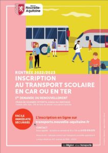 Les inscriptions et paiements doivent se faire via le site internet de la Région Nouvelle Aquitaine : transports.nouvelle-aquitaine.fr