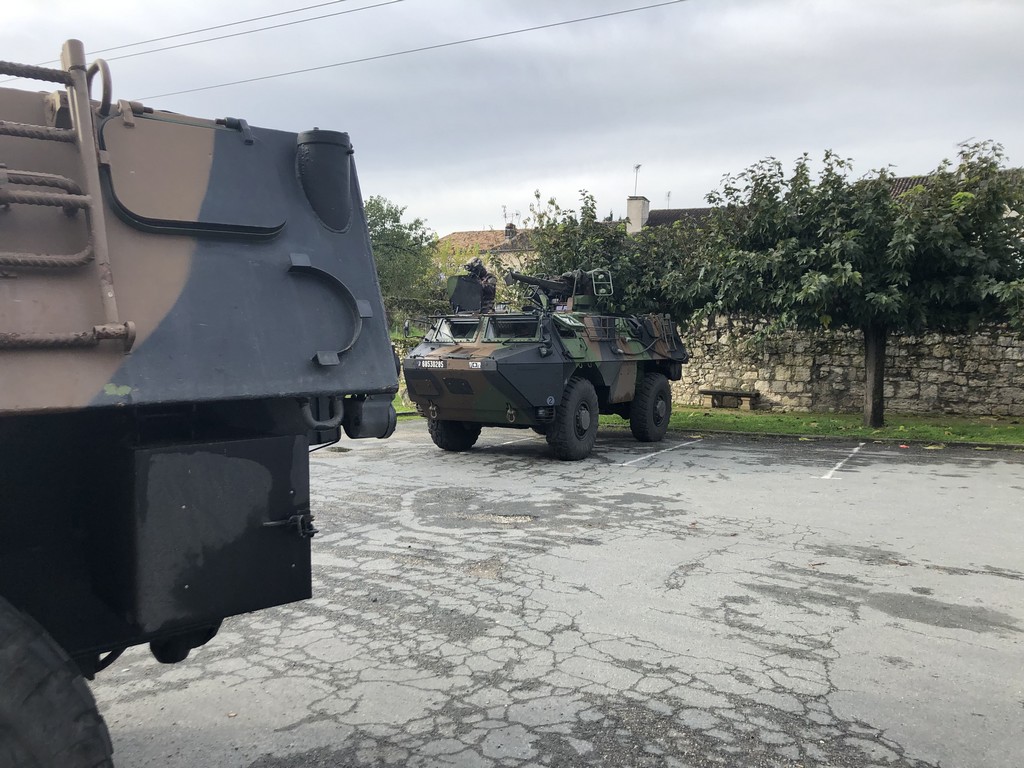 Monsieur le Maire, qui passait par là, a pu voir de drôles d’engins stationnés sur la Place du Moulin à La Sauvetat du Dropt … Certainement un déplacement d’une caserne à une autre, ou alors, de grandes manœuvres si l’on en croit les vols remarqués et insistants de deux hélicoptères au cours de la même journée !