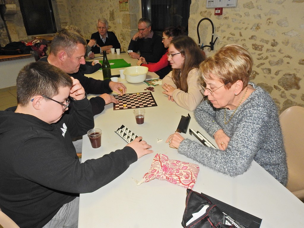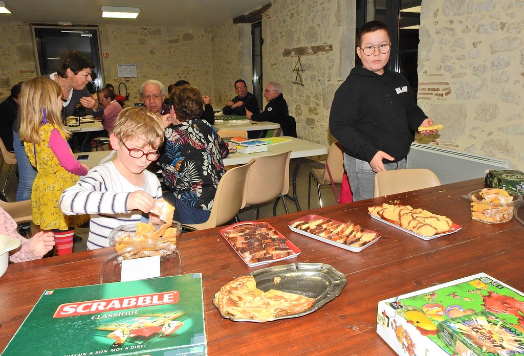 A la pause, ces dames de l’association ont servi crêpes et autres pâtisseries maison accompagnées de cidre et de boissons chaudes. Les parties ont repris ensuite, bien souvent avec de nouveaux partenaires et la soirée s’est clôturée après 23h par de chaleureux au revoir et à bientôt.