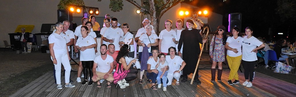 Pour immortaliser la fin de cette longue saison estivale, quasi tous les bénévoles se sont retrouvés sur le dancefloor pour la photo de l’année avec le beau tee-shirt aux couleurs de la commune et de l’association. Certains sont absents cependant. D’autres se cachent ! Saurez-vous dire où est Peter ?…
