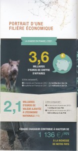 La filière chasse génère chaque année: 3,6 milliards d’euros de chiffre d’affaires. Elle apporte 2,1 milliards d’euros au PIB, c’est sa contribution à la richesse nationale.