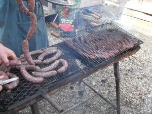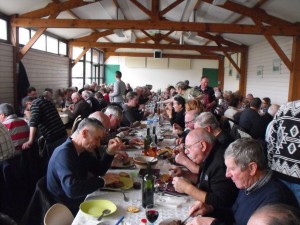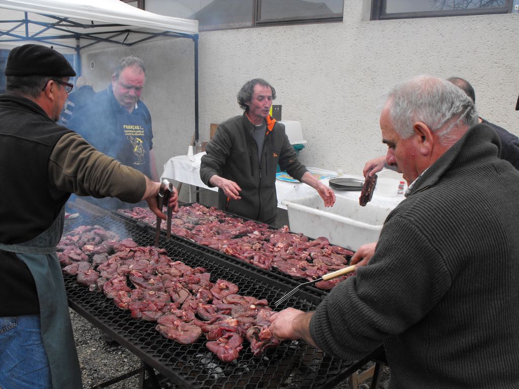 L’occasion de faire déguster le gibier chassé dans l’année: saucisses de sanglier, civet de chevreuil et sanglier et chevreuil braisé.