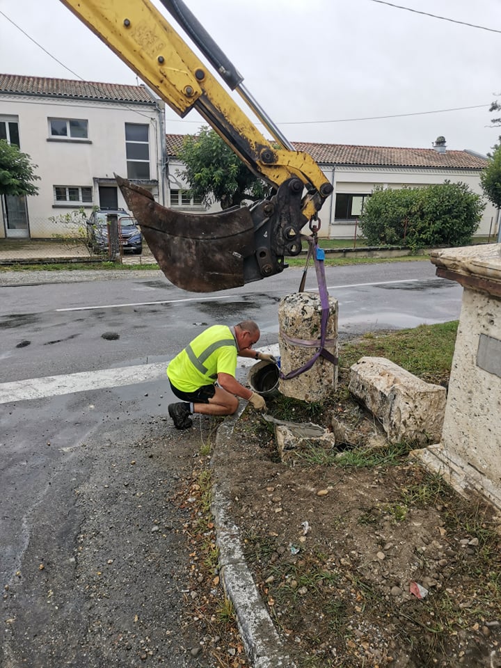 L’imposant socle en pierre a dû être remis à niveau avant d’y poser la croix et son Christ ainsi que les deux pierres qui l’encadraient. Un beau travail d’équipe que les habitués du lieu ne manqueront pas de remarquer !