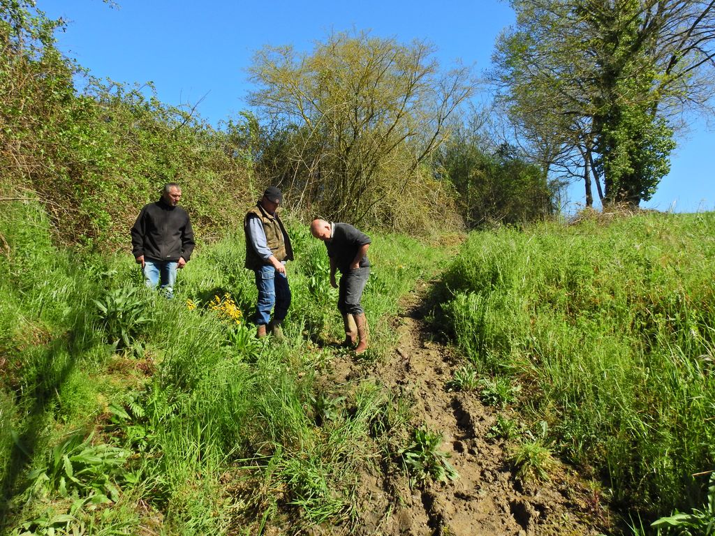 Et bien non, aucune fuite à déplorer. Les trois hommes de la situation ont bien compris que les eaux de pluie stagnaient dans ce chemin creux. Des travaux seront donc entrepris au cours de l’été pour l’assainir. Un fossé non loin de l’entrée et un drain plus haut.