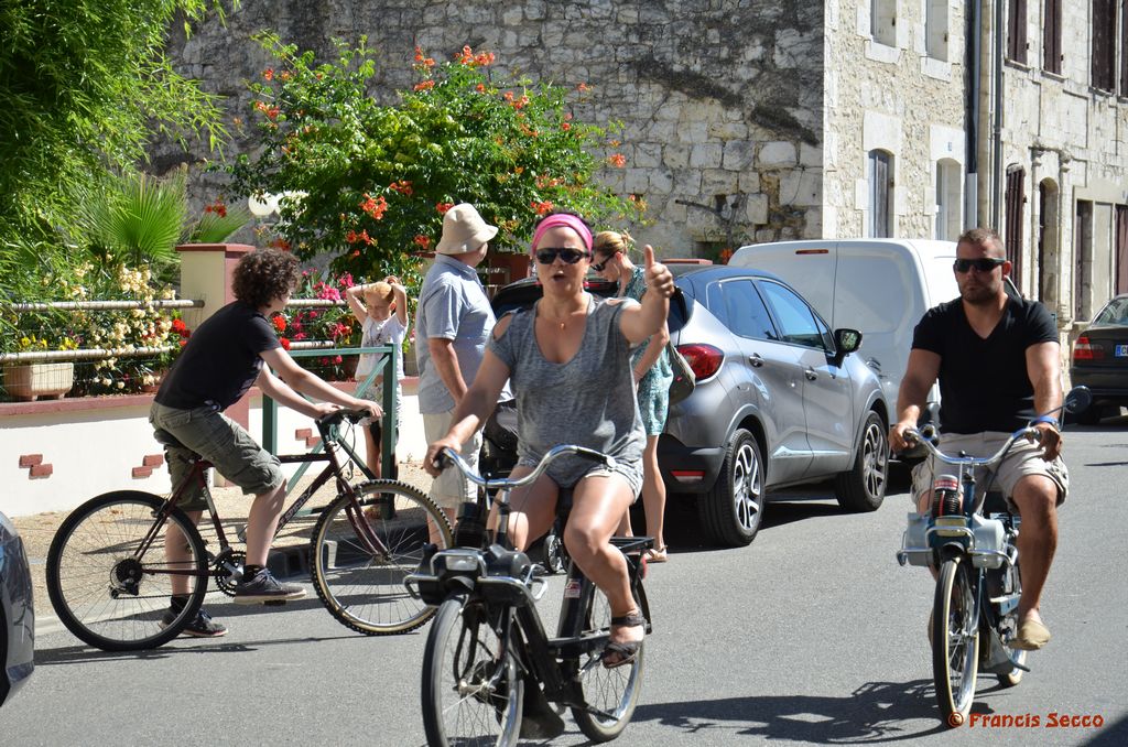 Petite nouveauté de dernière minute très appréciée, un défilé de solex conduit par une majorité de Sauvetatois collectionneurs dont Céline et Fred des Fées Gourmandises, Anne, Alain, Dédé, Zaza, Marceau et Gaëtan. Défilé dans la Rue de Grammont jusqu’à la Prairie des Croquants.
