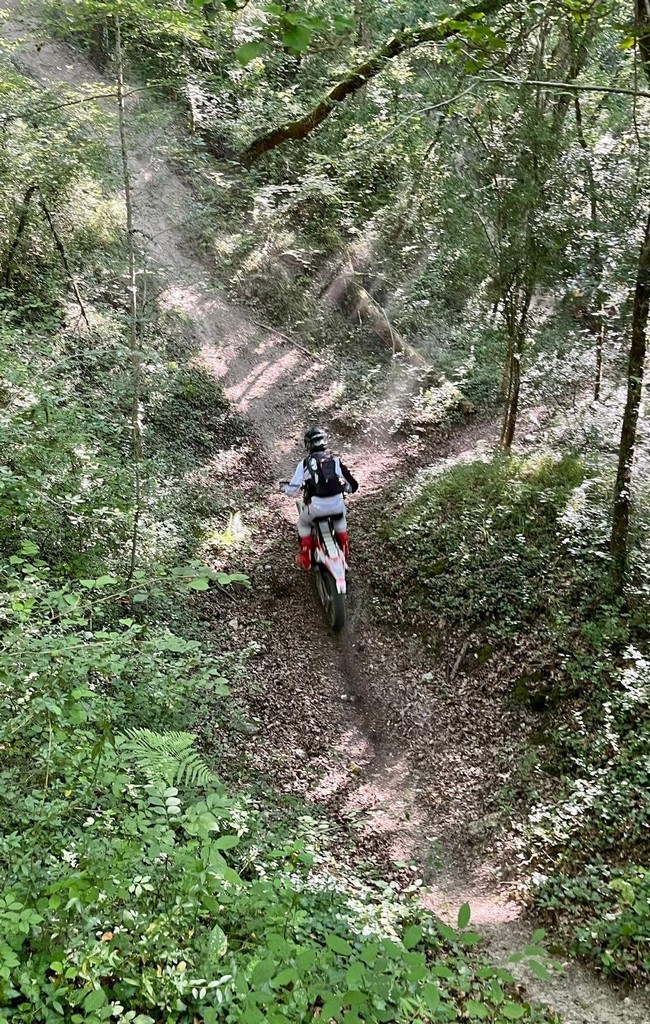 La situation imprévue du jour, pas forcément agréable sur le moment, fut de croiser dès le matin tôt un groupe de randonneurs à pied partis du village et empruntant une bonne partie du circuit dont un étroit chemin dans les bois du Beyla. Heureusement, l’épreuve sportive n’est pas une compétition et les chauffeurs de motos ou de quads ralentirent à leur approche.