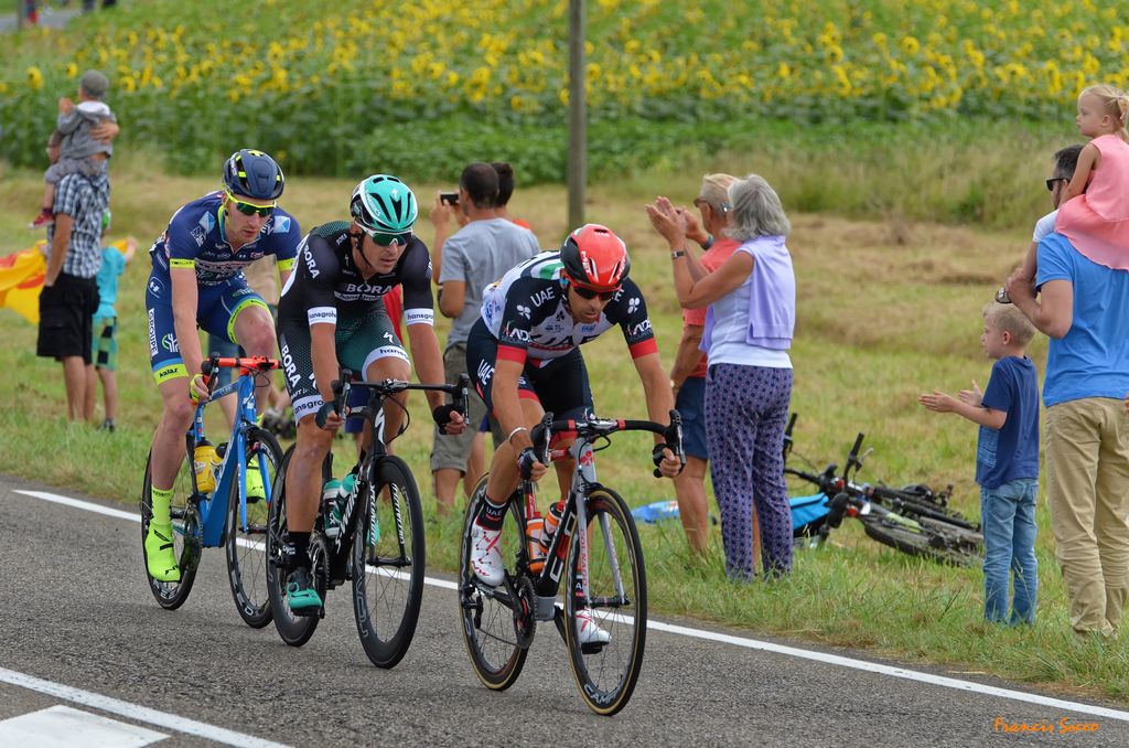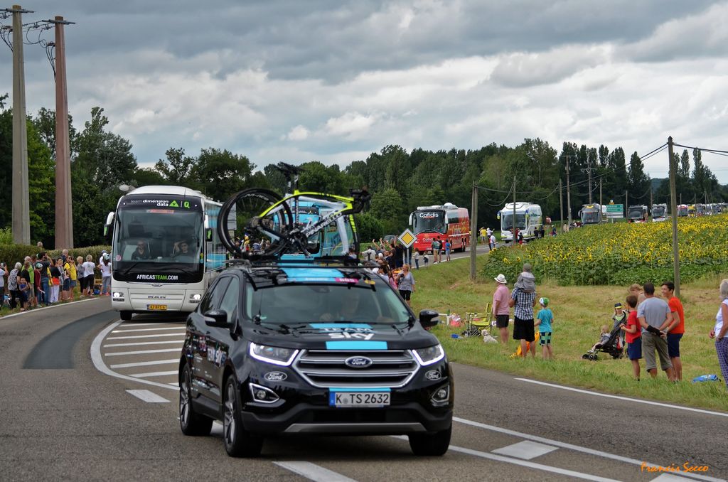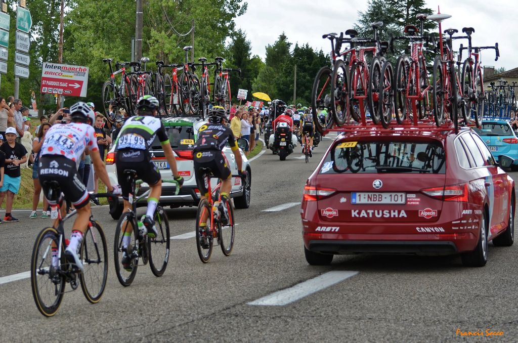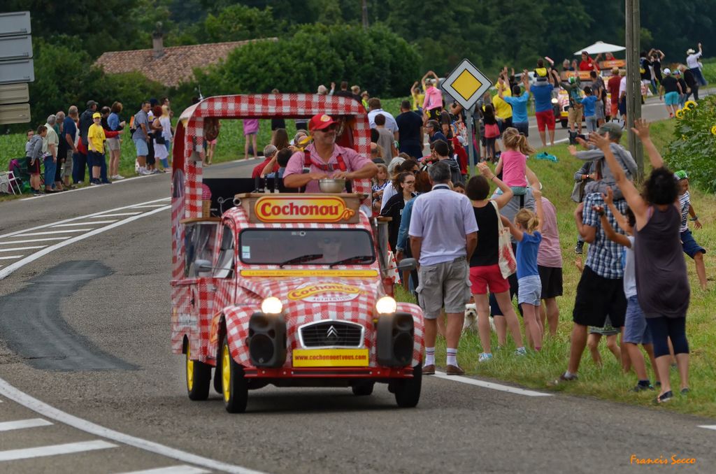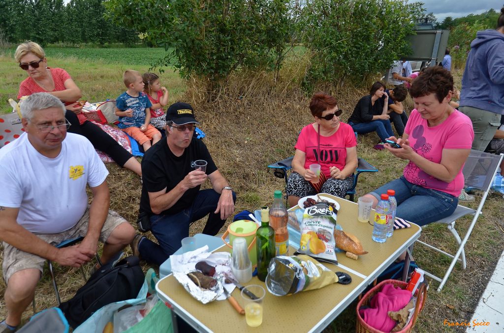 En images, le défilé tant apprécié de la caravane et de ses nombreux véhicules bigarrés puis les coureurs cyclistes en peloton serré. Entre temps, il aura bien fallu que nos amis cassent une petite croûte 😉