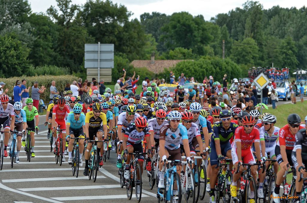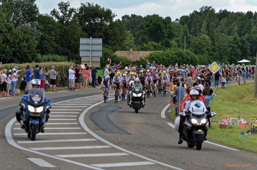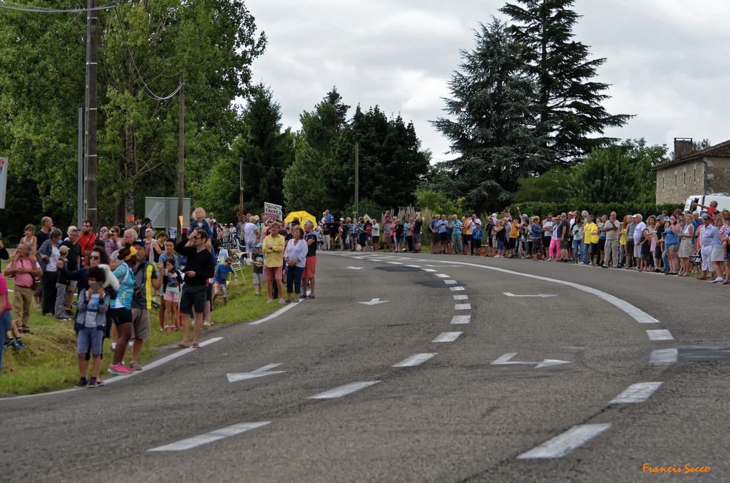 Largement suivi par la population, le Tour de France de renommée internationale, passait cette année encore à proximité de La Sauvetat du Dropt. De nombreux sauvetatois, noyés dans la foule des adeptes de cyclisme, se sont retrouvés au carrefour de la D933 pour attendre la caravane puis le peloton partis d’Eymet vers 13h en direction de Pau ce mercredi 12 juillet.