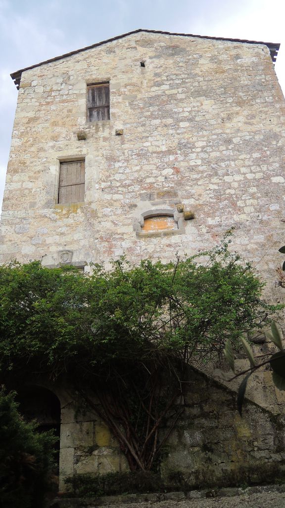 Today we can see some lovely windows, and also latrines from the Middle Ages on the north part of the tower. On the main face of the tower is what is known in French as a meurtrière cruciform, a cross-shaped opening made in a wall to allow observation and attack: the opening is narrow from the outside, but large inside.
