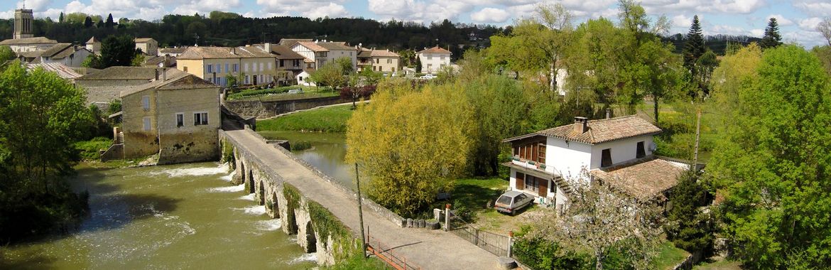 The Roman style bridge now has 23 arches, 11 of which date from the Roman style bridge of the 12th century when the Lords of Caumont fortified the town by surrounding it with a ditch linked to the river. In the 13th century frequent flooding of the river transformed the bed of the Dropt little by little and it became necessary to construction a second bridge of 12 arches, but in a Gothic style.