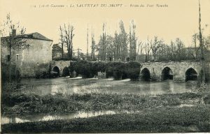 Source: Archives de Monsieur Moreau, architecte du village, à l’origine de la création du Syndicat d’Initiative. Anecdotes tirées du livre du sauvetatois et conseiller municipal Jean Guilherm « La Sauvetat du Dropt d’Hier à Aujourd’hui » édité en 1990. Informations sur « la navigation du Drot » du site valleedudropt.com et sur le Pigeonnier du site culture.gouv.fr