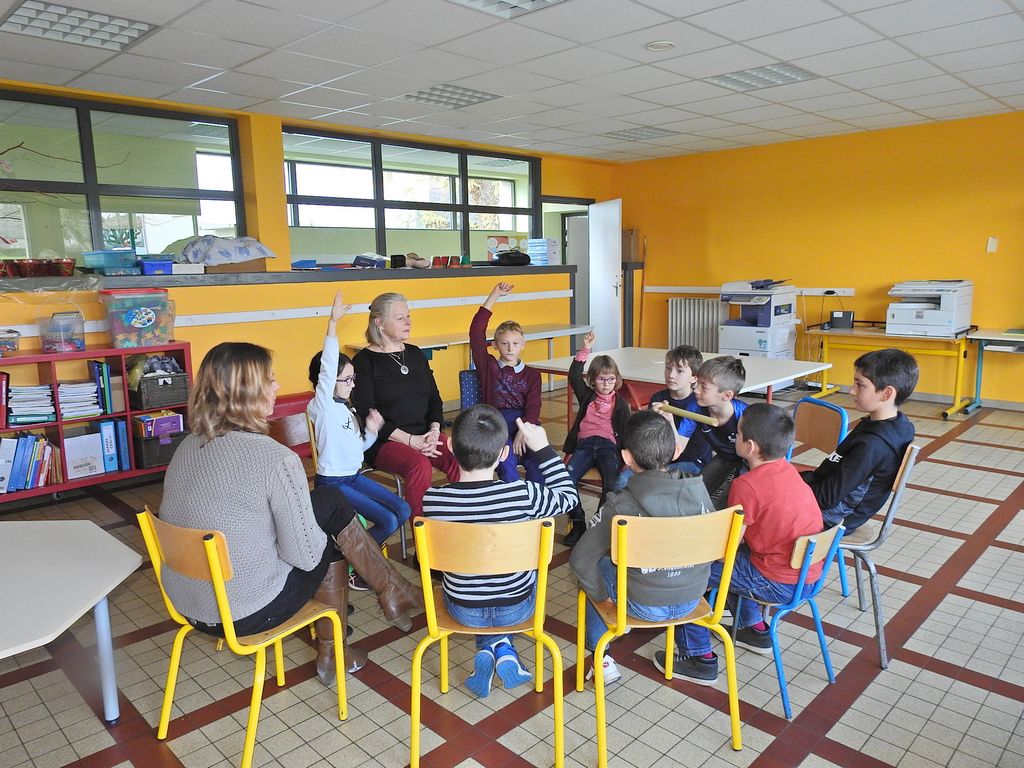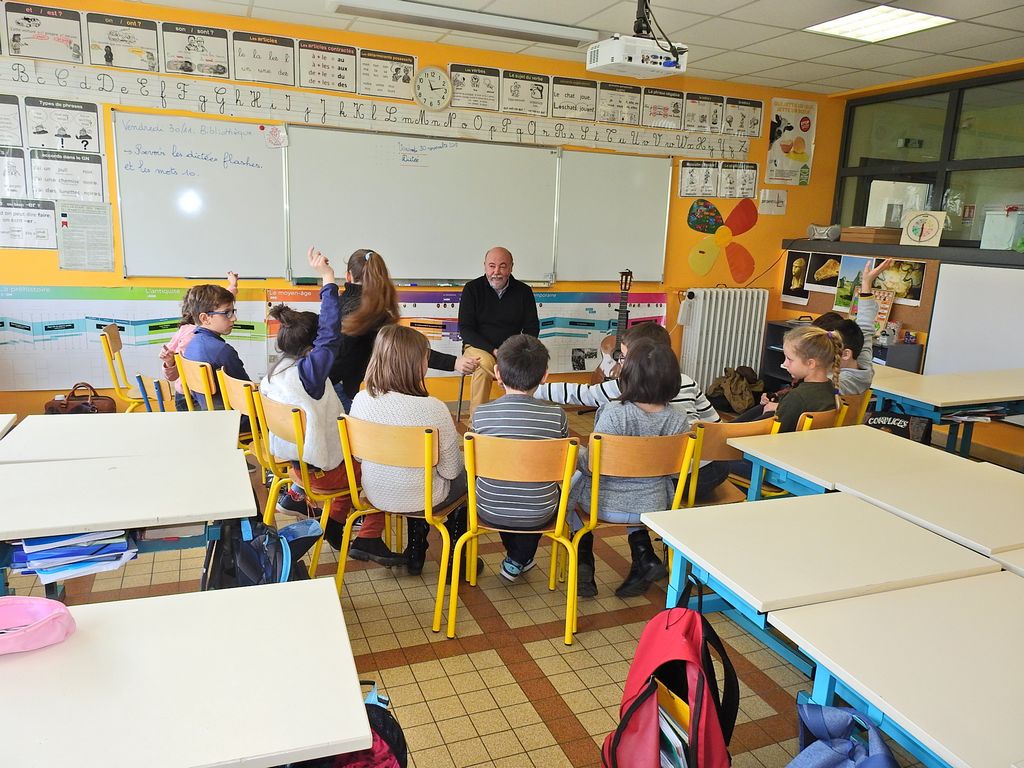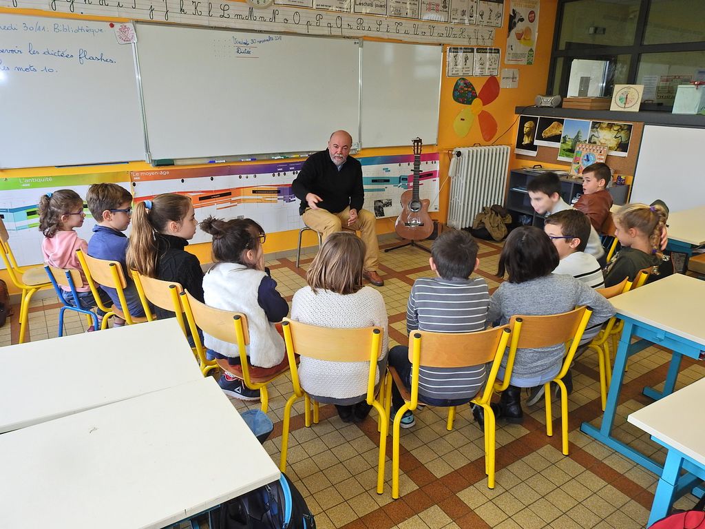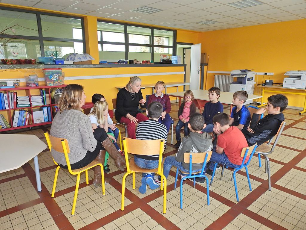 Dans cet objectif, début décembre, il a été proposé un atelier découverte dans la classe de CE2-CM1 de Stéphanie Ledoux. Pour l’animer, la Mairie a fait appel à Nell et Jack, conteuse et musicien de Gens de Paroles ayant un agrément pédagogique auprès de la fondation S.E.V.E (Savoir Être et Vivre Ensemble).