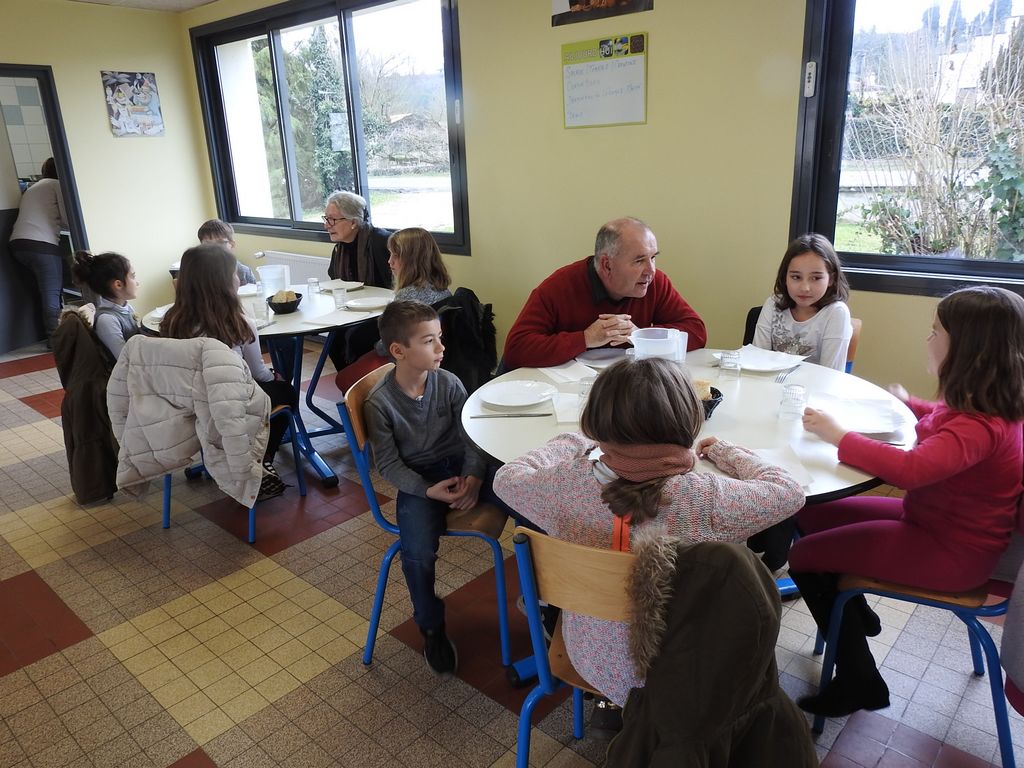 Et Monsieur le Maire qui était là pour ce premier repas des seniors à la cantine est revenu lui aussi enchanté. A sa table, 3 enfants qui se sont adaptés très vite à sa présence et qui ont lancé la conversation après quelques questions banales. Ils ont abordé des sujets très sérieux, la question de l’homosexualité et de savoir comment ils pouvaient faire des enfants! Une réflexion sur le suicide et la disparition de leur grand-mère ou grand-père. Son petit voisin de table, Thomas, lui a dit qu’il connaissait par cœur le règlement de la cantine. Parce qu’il l’avait copié 100 fois!