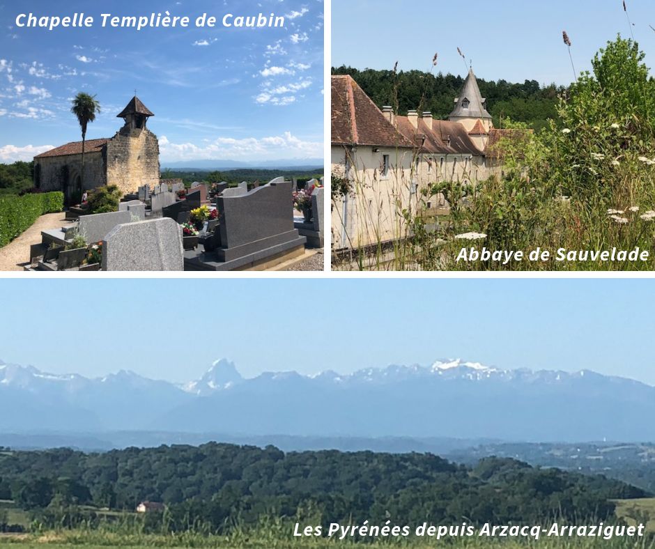 « Chemin semé de merveilles et de très belles rencontres …Mes pieds me jouent des tours, ils n’ont pas aimé le macadam bouillant du week-end ! Toute petite étape aujourd’hui (mercredi 5 juin) jusqu’à St Palais où j’écouterai tomber la pluie ! Ce chemin rend modeste !… » |