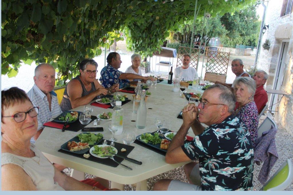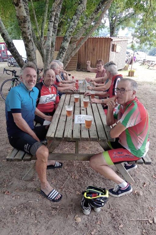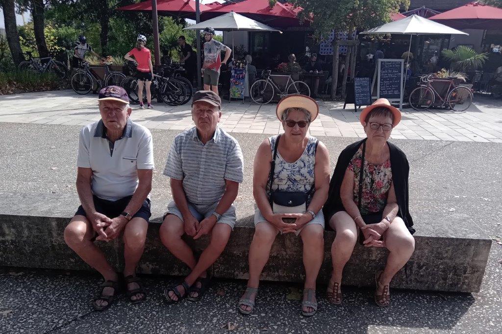 A midi, petite pause sympathique à Vézac sur les bords de la Dordogne où Régine, Jacqueline, Guislaine et Louise nous rejoignent pour la restauration.