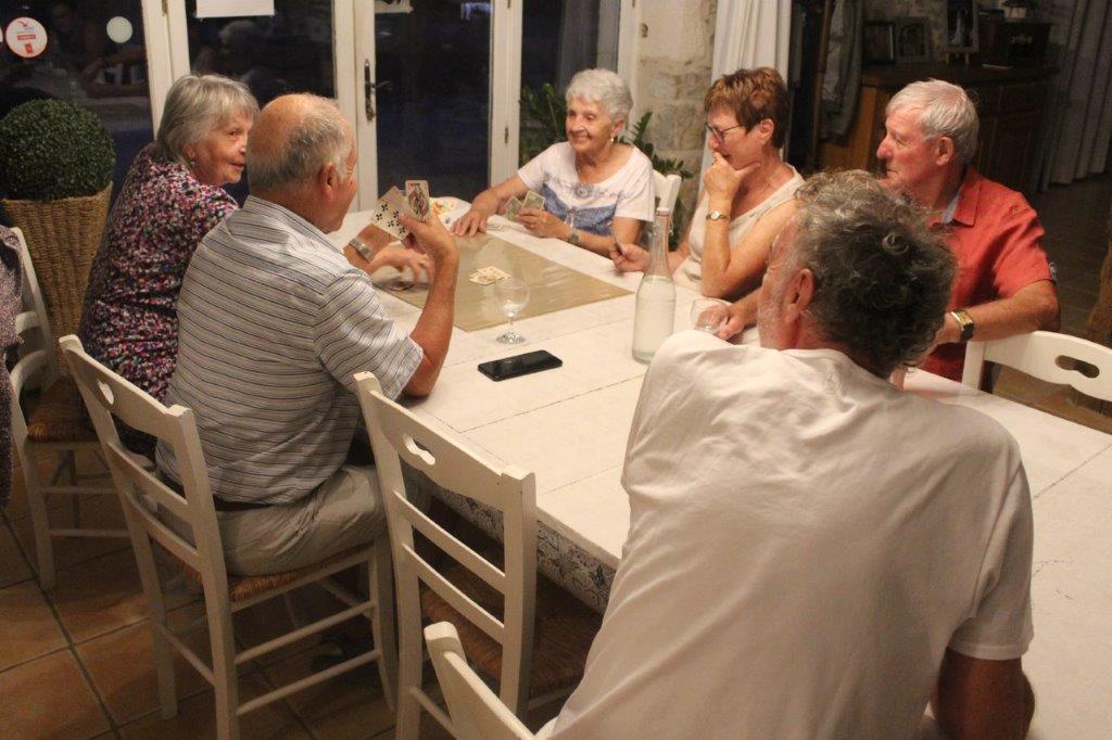 Après cette journée quand même harassante, nous voici réunis autour d’une bonne table et les forces restantes nous autorisent une bonne belote avant de nous coucher.